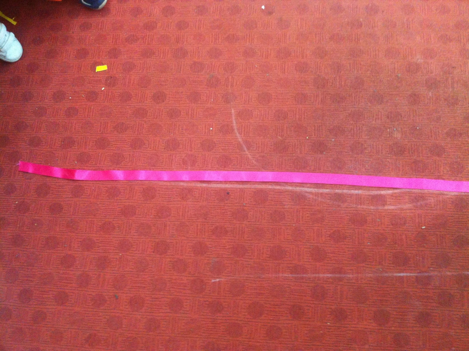 Ευθεία γραμμή σχεδιασμένη με κιμωλία πρώτα στην μοκέτα μας και με κορδέλα υφασμάτινη στη συνέχεια.