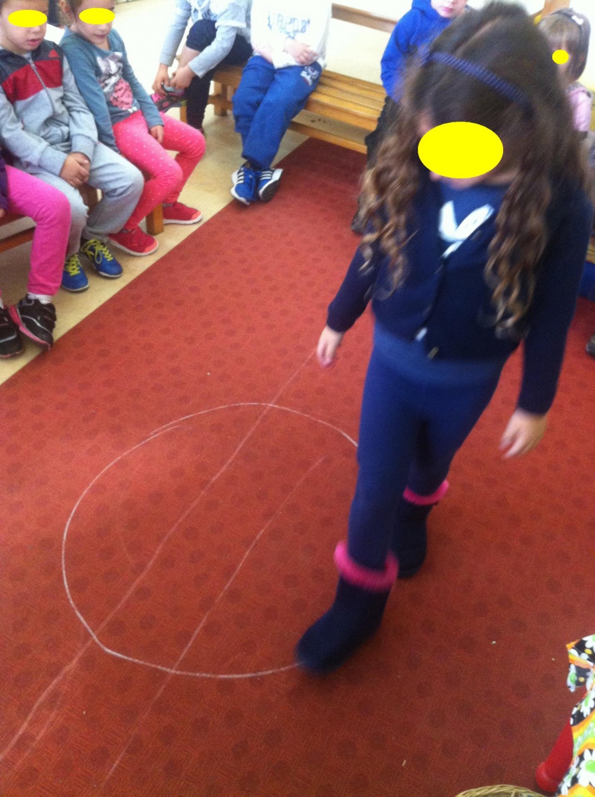 Σχεδιάζουμε με κιμωλία στη μοκέτα μας και περπατάμε τον κύκλο.