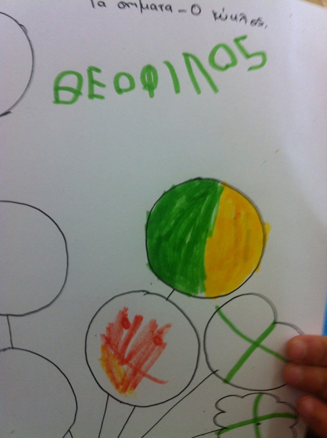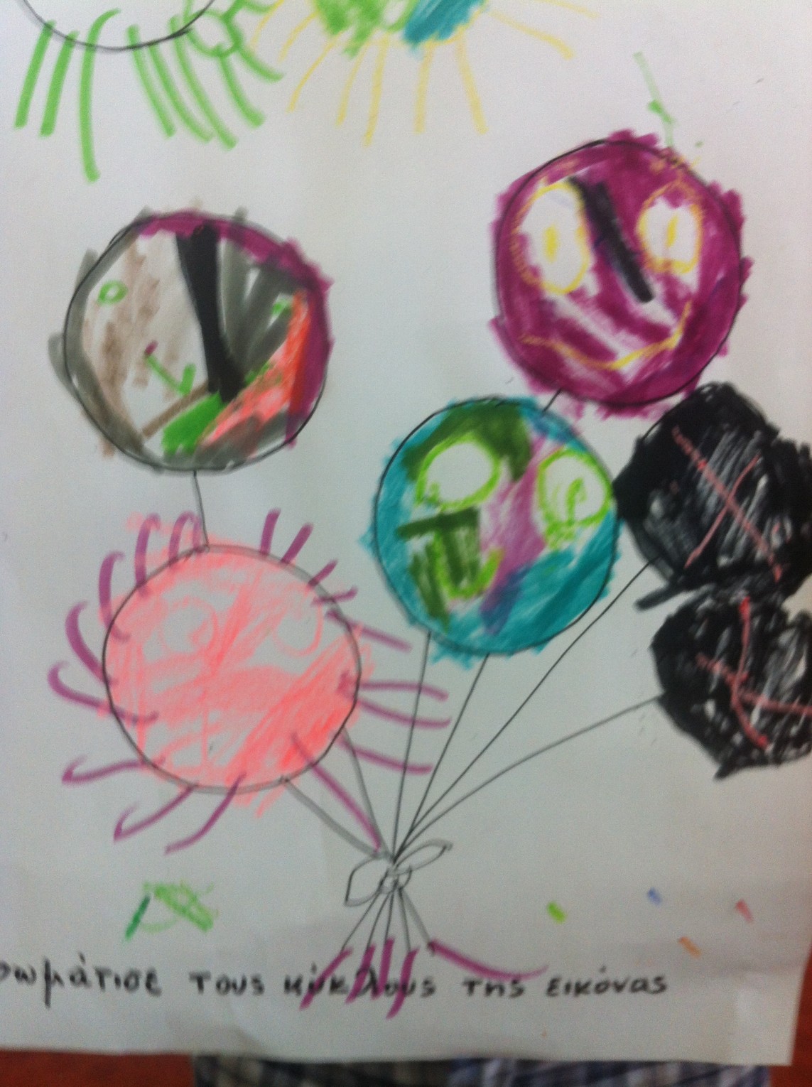 “Να τα χρωματίσουμε κι επειδή το μαύρο είναι το πιο σκούρο από όλα τα χρώματα μπορούμε να το χρωματίσουμε πάνω από τα άλλα χρώματα..Να βάλουμε και μαλλιά”