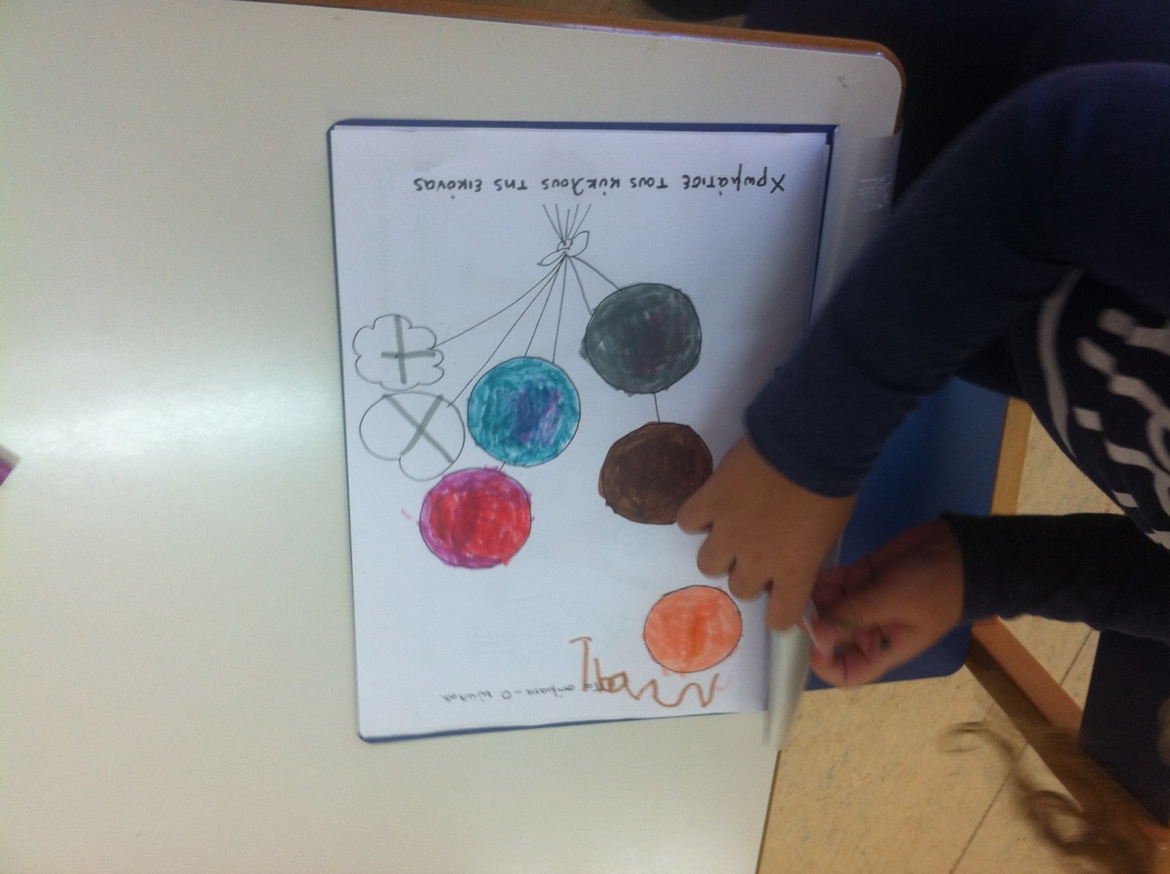 Αποφασίζουμε να φτιάξουμε μπαλόνια σε χαρτί και να σβήσουμε όσα μπαλόνια δεν είναι κύκλοι..
