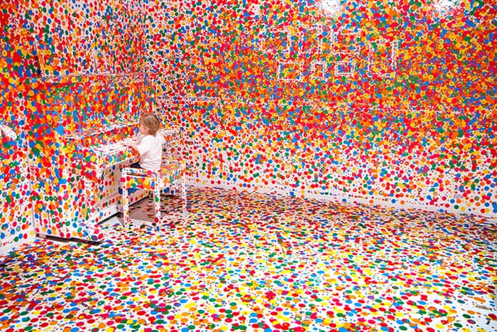 αλλά και η Yayoi Kusama που ζει στην Ιαπωνία ζωγραφίζει με τελείες αλλά κάπως διαφορετικά να δείτε: