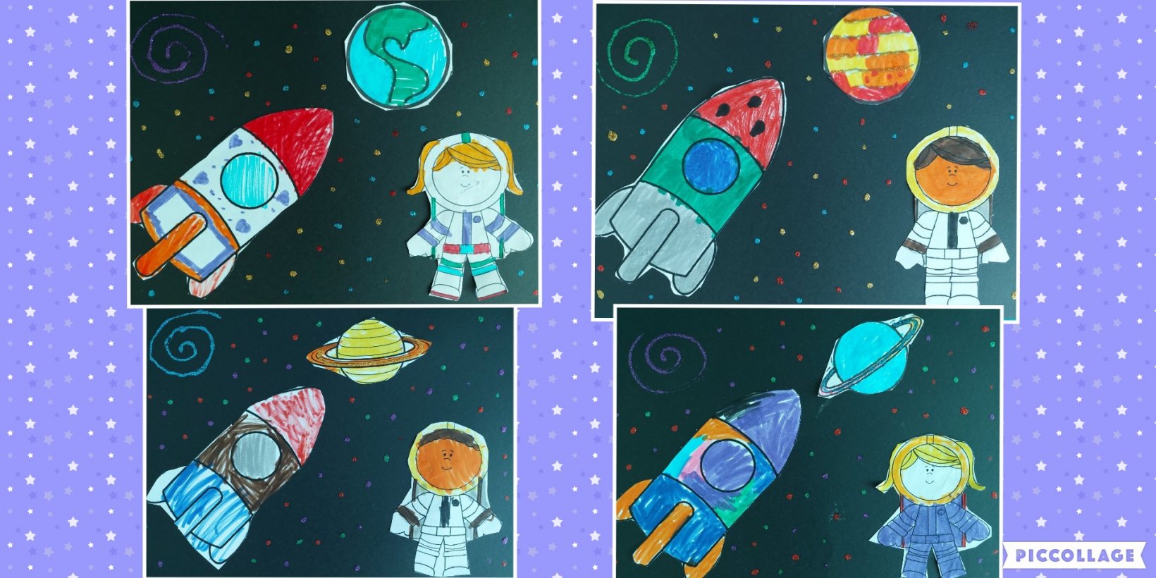 Το παραπάνω βιβλίο και το ποίημα “Ο Αστροναύτης” στάθηκαν αφορμή να ζωγραφίσουμε εικόνες με αστροναύτες σε διαστημικά ταξίδια.