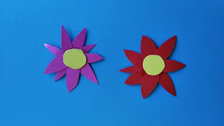 13. Στη συνέχεια κολλάμε ανάμεσα στα τέσσερα πέταλα κι άλλα στο ίδιο χρώμα.