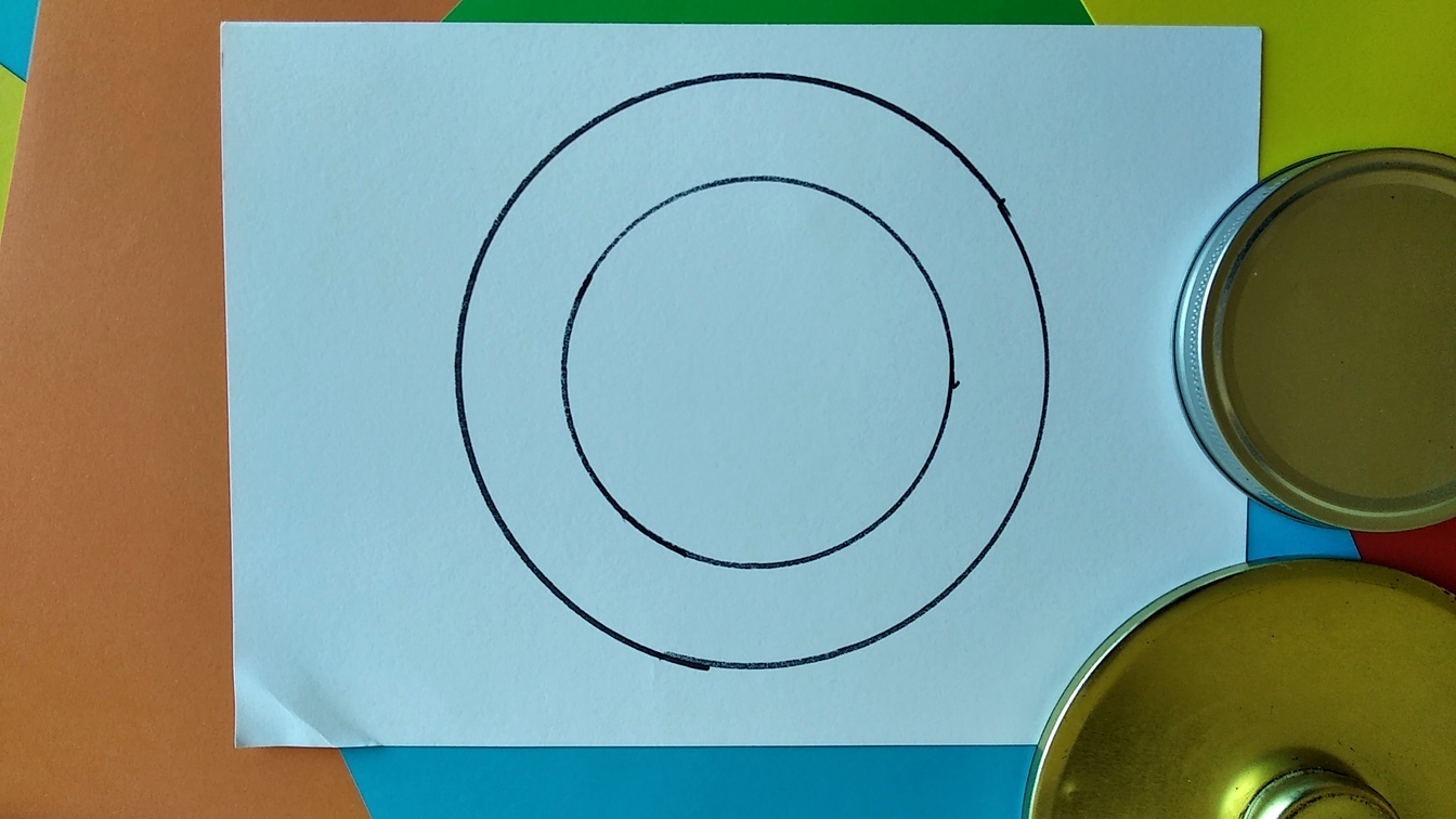 2. Με ένα μικρότερο καπάκι σχεδιάζουμε μέσα στον μεγάλο κύκλο έναν λίγο μικρότερο κύκλο.