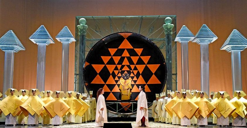 Ο Ζαράστρο καλωσορίζει τον Ταμίνο και την Παμίνα στο ναό του Ήλιου. Εκεί ενώνονται για πάντα και το καλό νικάει το κακό.