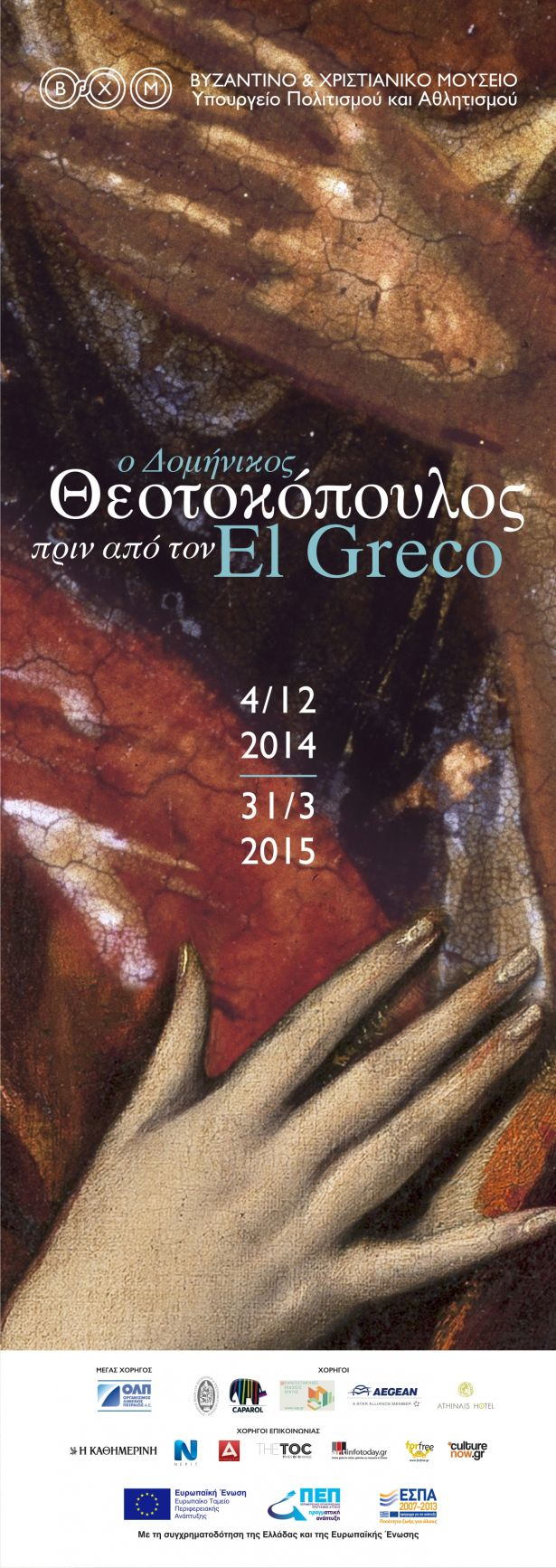 Η έκθεση «Ο Δομήνικος Θεοτοκόπουλος πριν από τον El Greco», η οποία πραγματοποιείται στο πλαίσιο του ελληνικού επετειακού προγράμματος για τα 400 χρόνια από το θάνατο του El Greco, παρουσιάζεται στο Βυζαντινό και Χριστιανικό Μουσείο μέχρι τις 31 Μαρτίου 2015.