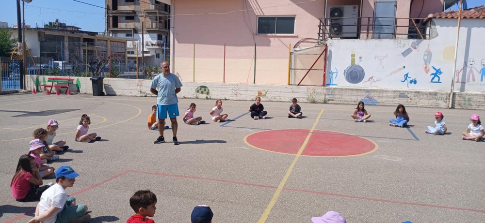 Εκεί τους περίμενε ο κ. Στέλιος. Με την καθοδήγησή του, αφού μίλησαν για το μάθημα της Γυμναστικής έπαιξαν πολλά παιχνίδια με τα Δευτεράκια μας.