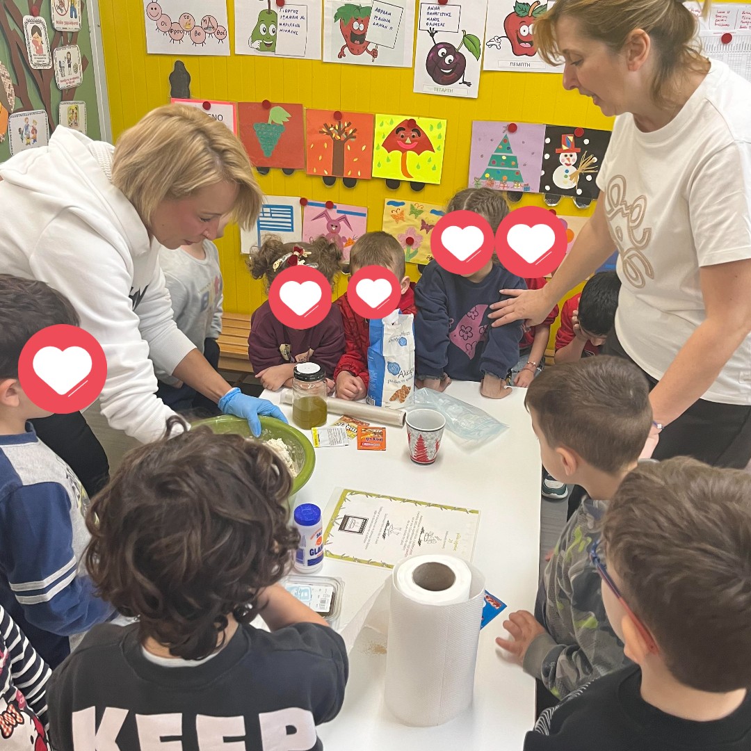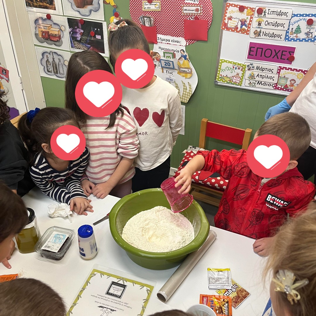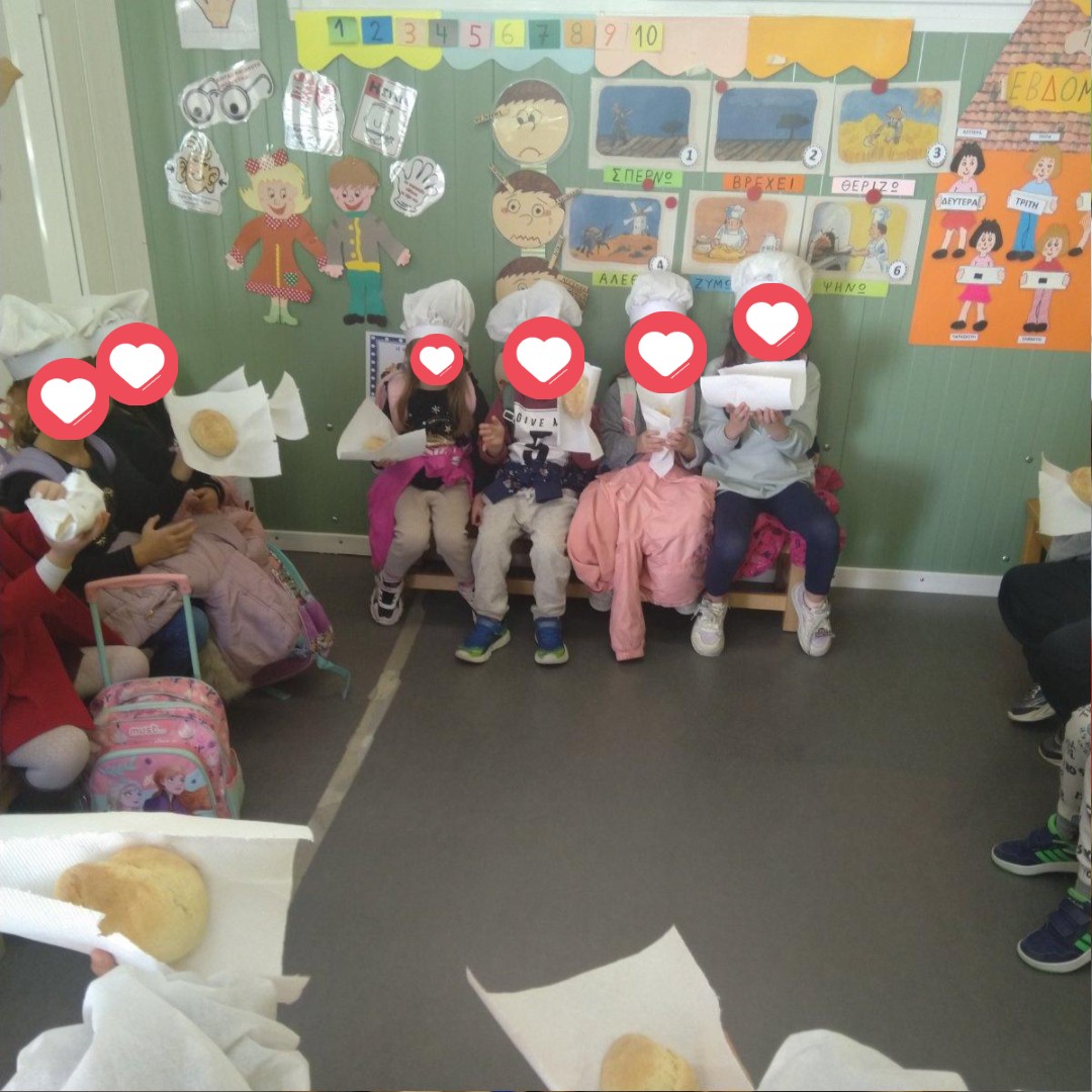 Στη συνέχεια, έφτιαξαν με τα χεράκια τους ψωμί 🥖, μαθαίνοντας τη διαδικασία από το αλεύρι μέχρι τον φούρνο.