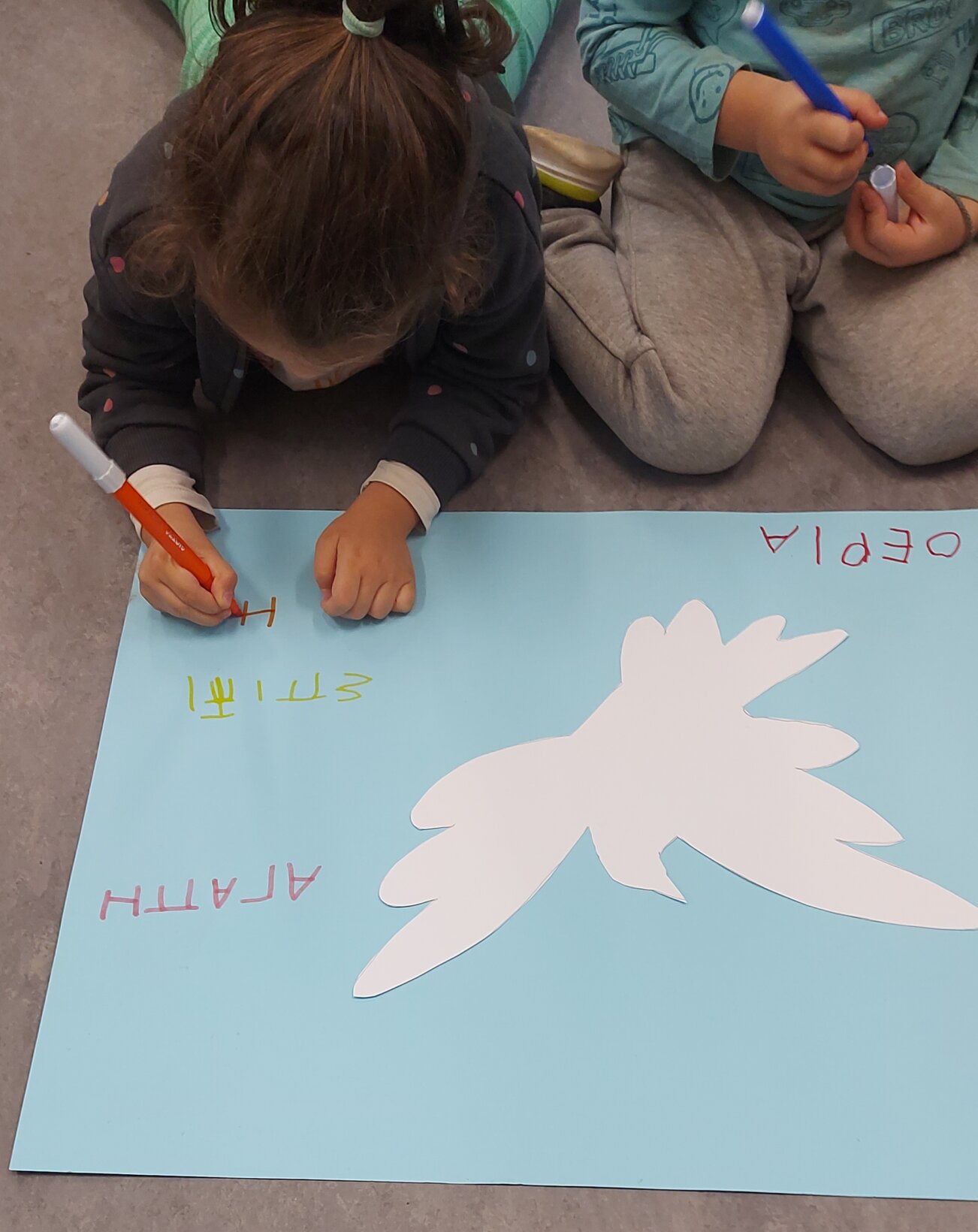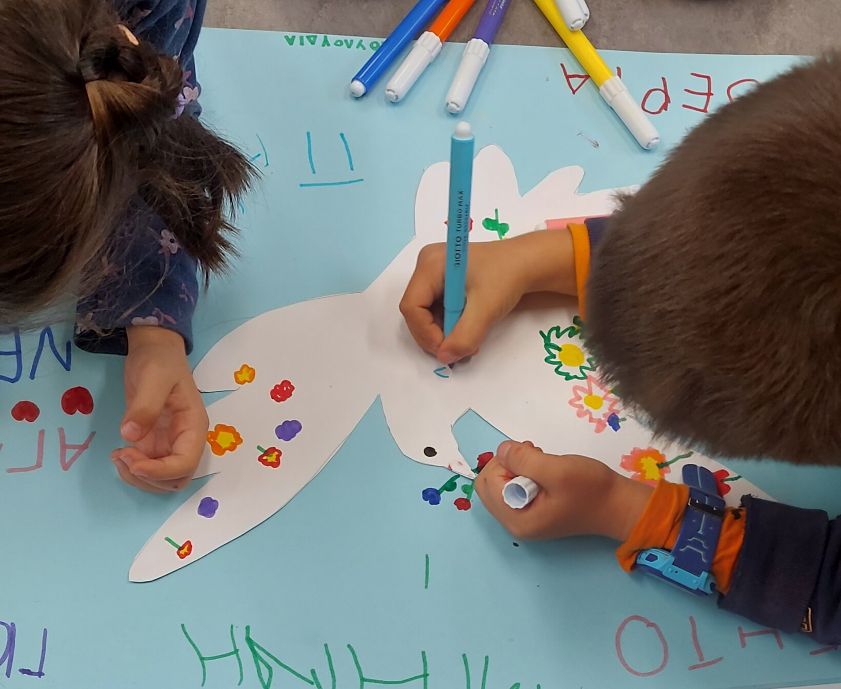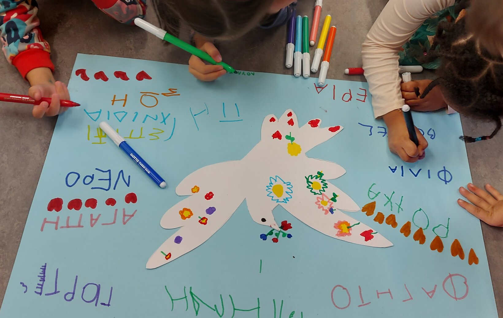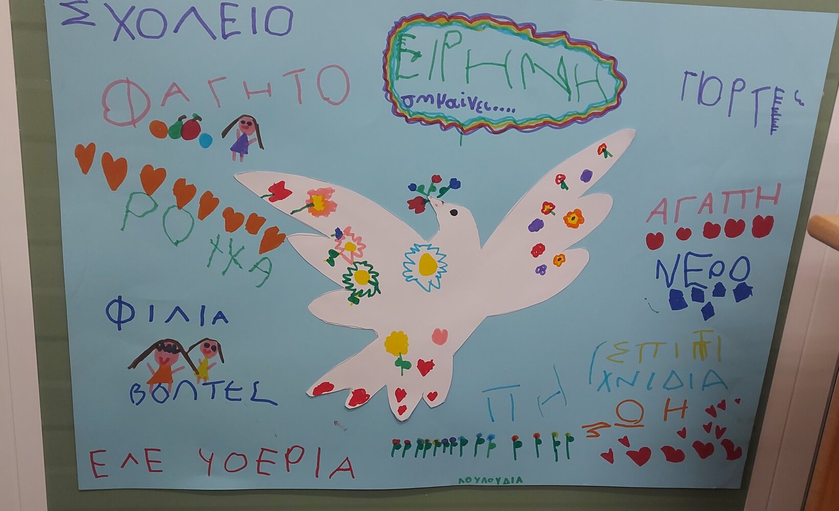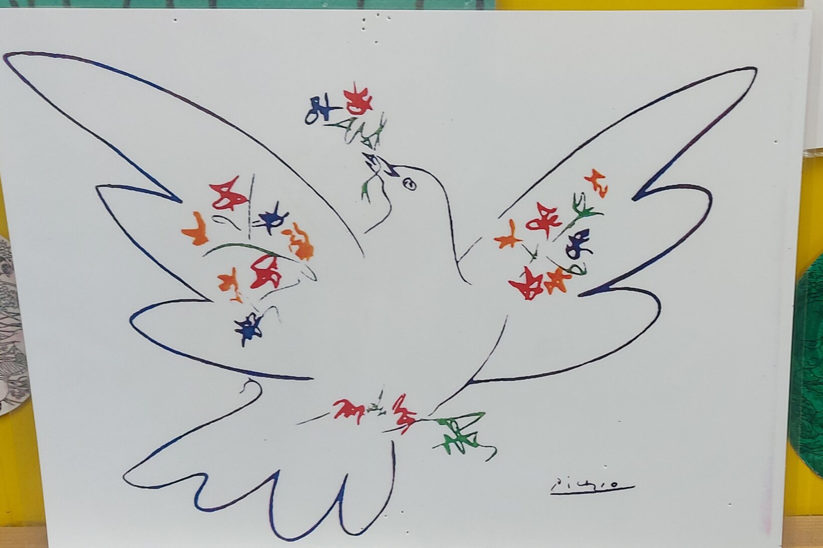 Με αφορμή τον πίνακα του ΠΙΚΑΣΟ:”Το Περιστέρι της Ειρήνης” και με τη μεθοδολογία των ρουτίνων σκέψεως:” Βλέπω-Σκέφτομαι-Αναρωτιέμαι”, αφού συζητήσαμε στην παρεούλα, αποφασίσαμε να δημιουργήσουμε το δικό μας περιστέρι με ζωγραφιές και τις δικές μας αντιπροσωπευτικές λέξεις για την Ειρήνη.
