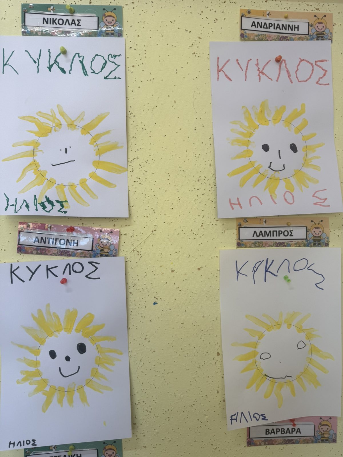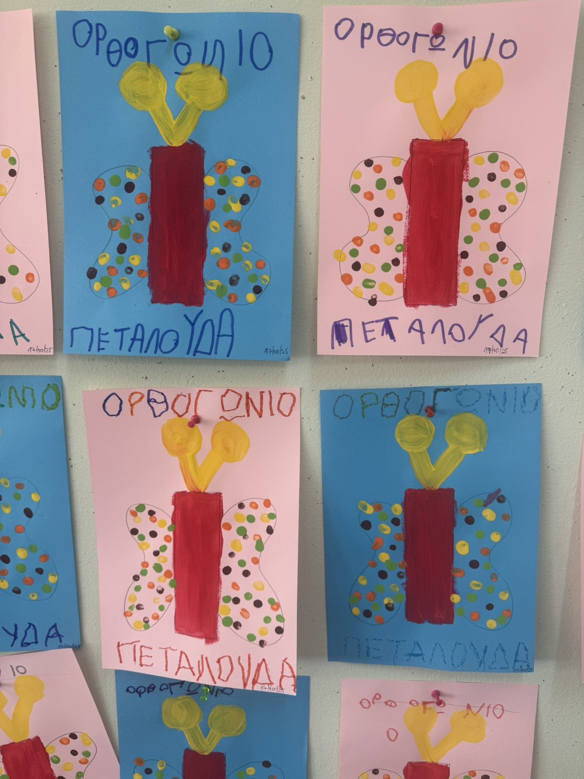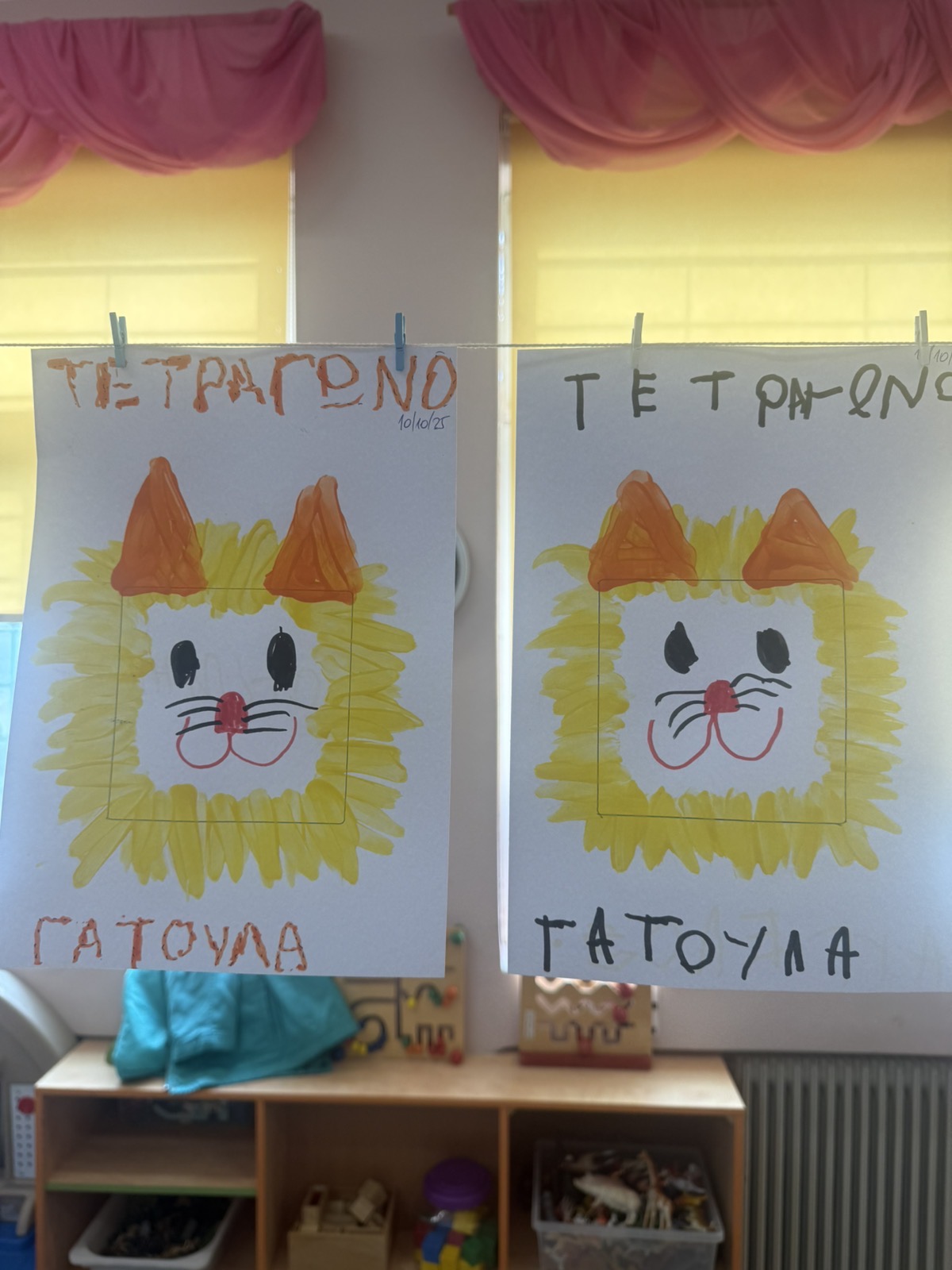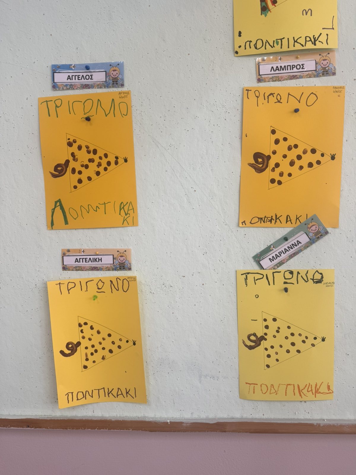 ΣΧΗΜΑΤΑ και ΧΡΩΜΑΤΑ Ο κατεργάρης τρίγωνο-ποντικός!!! Η τετράγωνη γατούλα . Η ορθογώνια πεταλουδιτσα! Και στον κύκλο… κανείς καλύτερος από τον ήλιο!!! Παλέτες με φανταστικά χρώματα στολίζουν τις τάξεις! Συνδυασμοί χρωμάτων!!!