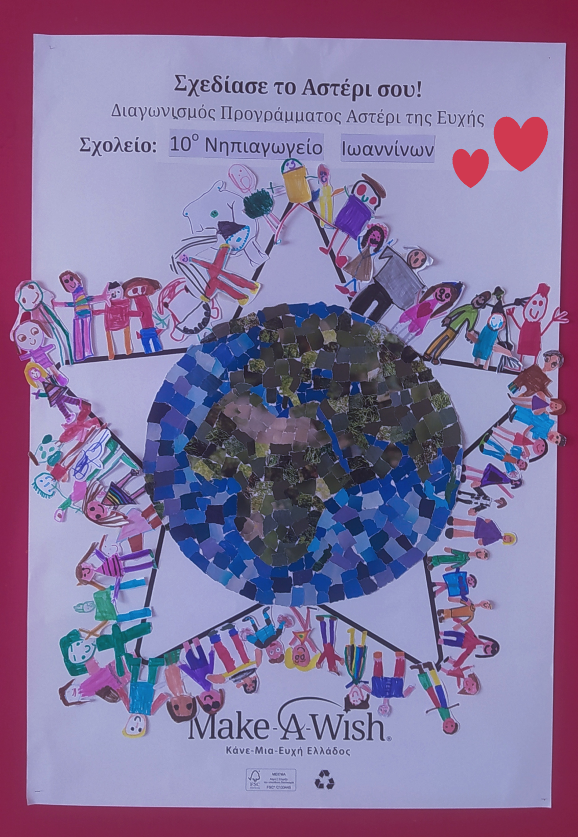 Αξιοποιώντας τη μακέτα του Αστεριού από το πρόγραμμα “To Αστέρι της Ευχής” , οι μαθητές/τριες του Νηπιαγωγείου μας συνεργάστηκαν και ομαδικά δημιούργησαν το δικό τους ξεχωριστό αστέρι, συμμετέχοντας έτσι στο Δημιουργικό Διαγωνισμό του Make a Wish στην κατηγορία “Σχεδίασε το αστέρι σου”.