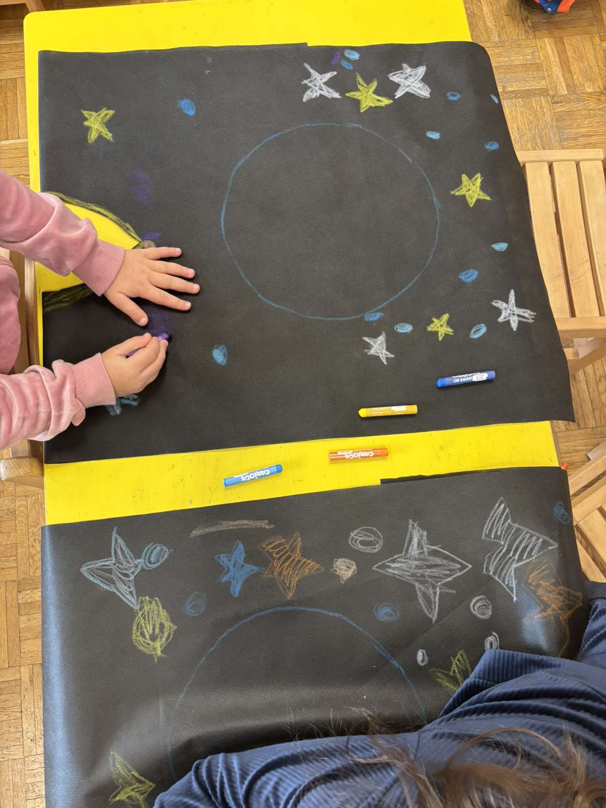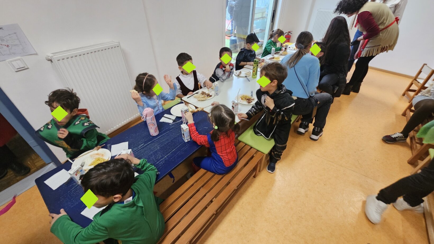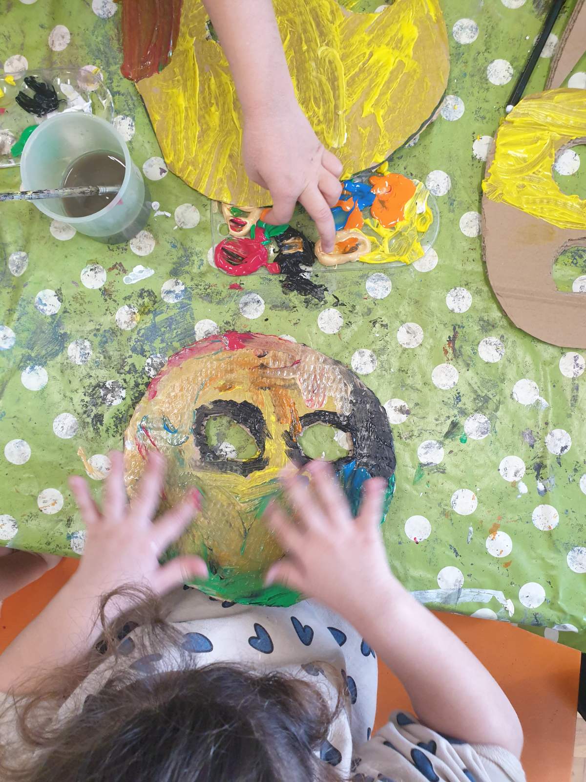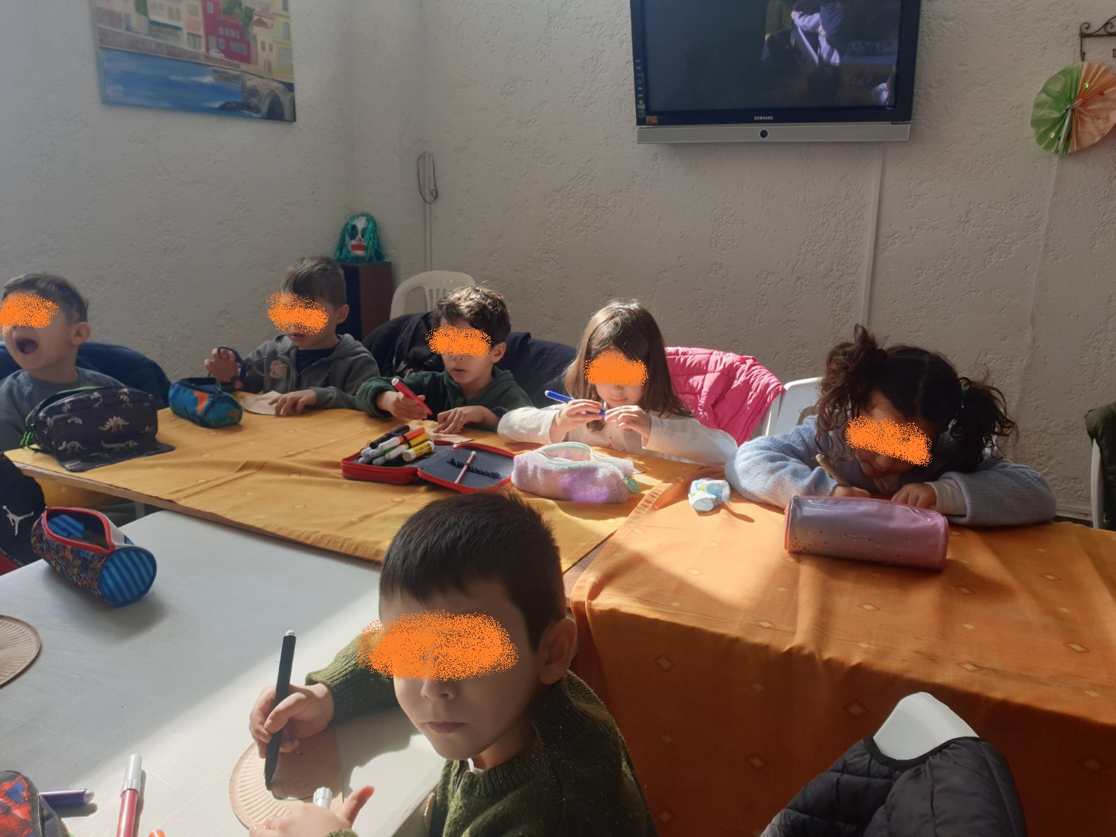 Τον καλωσορίσαμε με γιορτινή διάθεση, μιας και τιμούμε το Τριώδιο μέχρι να έρθουν οι Απόκριες ! Αφού συζητήσαμε και μάθαμε για τα ήθη και τα έθιμα των Αποκριών, ξεκινήσαμε να φτιάχνουμε κατασκευές με διαφορετικές τεχνικές, κάτι που μας ενθουσίασε! Μάσκες με φυσικά υλικά, χρώματα, ζωγραφική με κάρβουνο, στολές με πλανήτες από χαρτόπανο, χαρτοπολτό και υφάσματα, γιγάντιες αφίσες με τον Αρλεκίνο και τον Κλόουν!