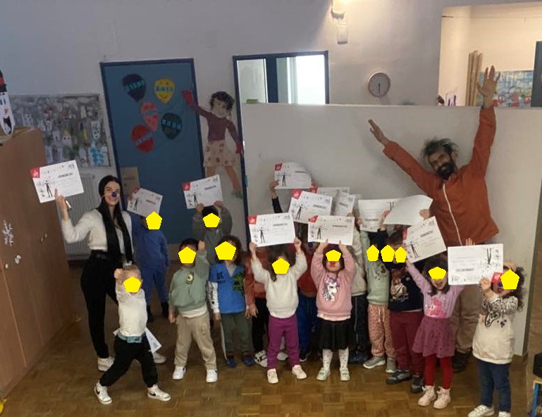 Την Τρίτη 18 Φεβρουαρίου 2025, είχαμε τη χαρά να υποδεχτούμε στο χώρο του σχολείου μας την ομάδα Circus Camino, και παρακολουθήσαμε το εκπαιδευτικό πρόγραμμα “Ζογκλερικά Αλλιώς”, που αφορά στο Functional Juggling στη νηπιακή ηλικία. Πιο συγκεκριμένα πραγματοποιήσαμε διάφορα ζογκλερικά και παιχνίδια ισορροπίας σε αντικείμενα κατάλληλα για την ηλικία μας. Μέσα από τις συγκεκριμένες δραστηριότητες καταφέραμε να αναπτύξουμε τις κινητικές αλλά και συναισθηματικές μας ικανότητες με την καθοδήγηση ενός μεγάλου! Περάσαμε υπέροχα και απολαύσαμε όλη τη δράση με ενθουσιασμό!