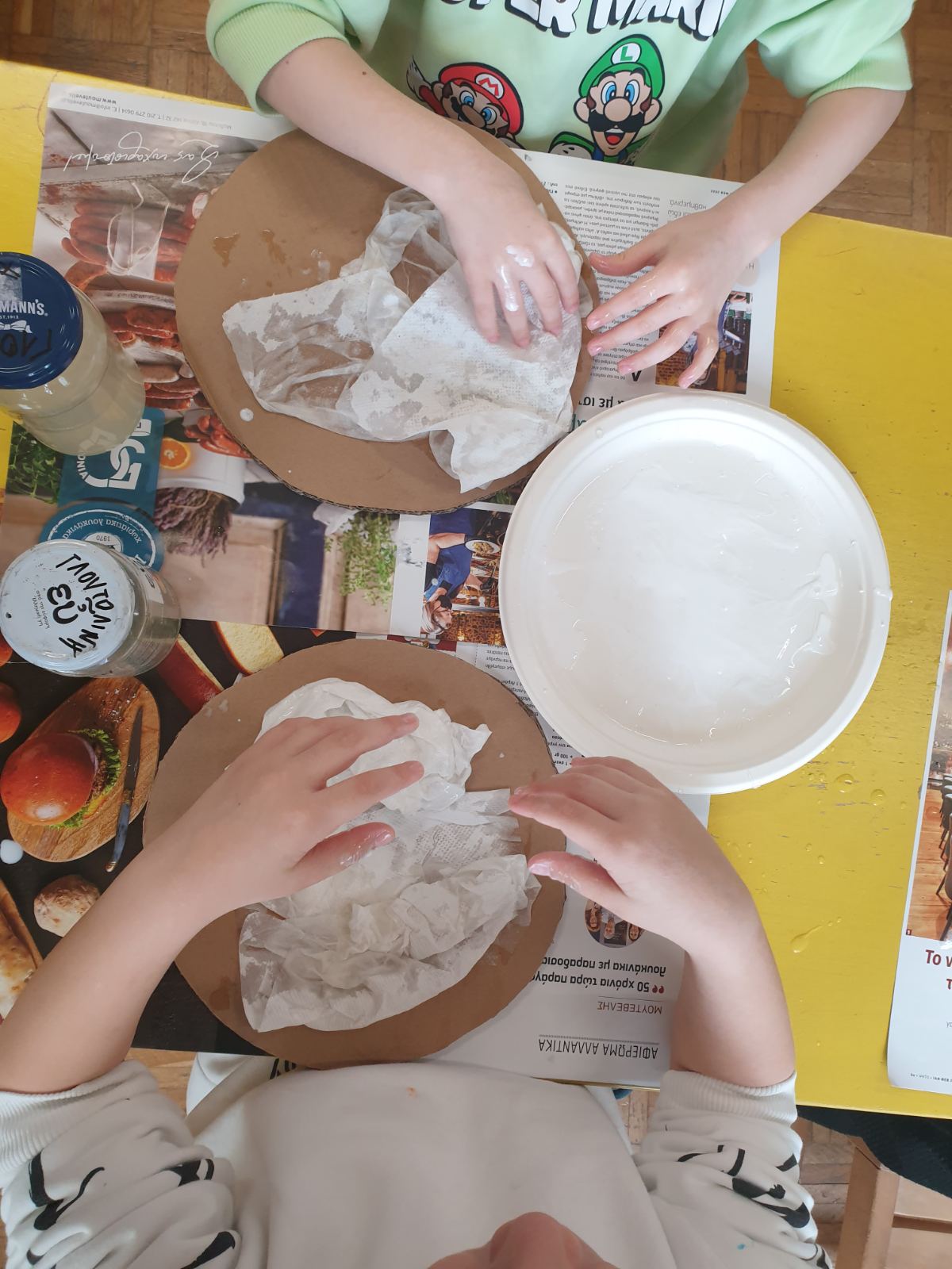 Κι αφού περάσαμε κι αυτόν το μήνα τόσο δημιουργικά και γιορτινά, κατασκευάσαμε και τους χαρταετούς μας για να γιορτάσουμε την Καθαρή Δευτέρα! Σε αυτήν την κατασκευή επιχειρήσαμε να δοκιμάσουμε την τεχνική με τον αφρό ξυρίσματος και τα χρώματα. Δημιουργήσαμε μια πανδαισία χρώματων που αποτυπώθηκε πάνω στο χαρτί μας και στη συνέχεια το διακοσμήσαμε με χάρτινα δαχτυλίδια και ουρά, όπως έχει και ο χαρταετός που πετάμε ψηλά στον ουρανό. Καλά κούλουμα!