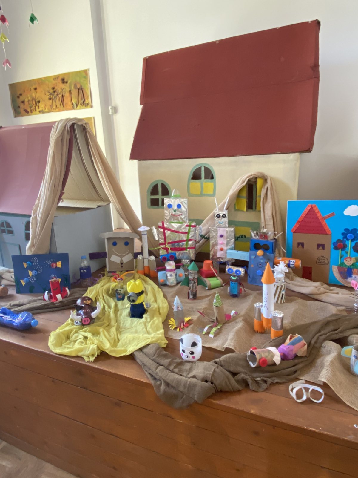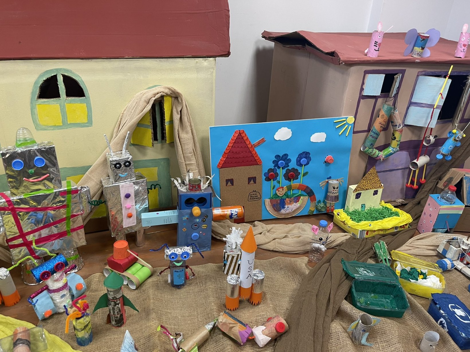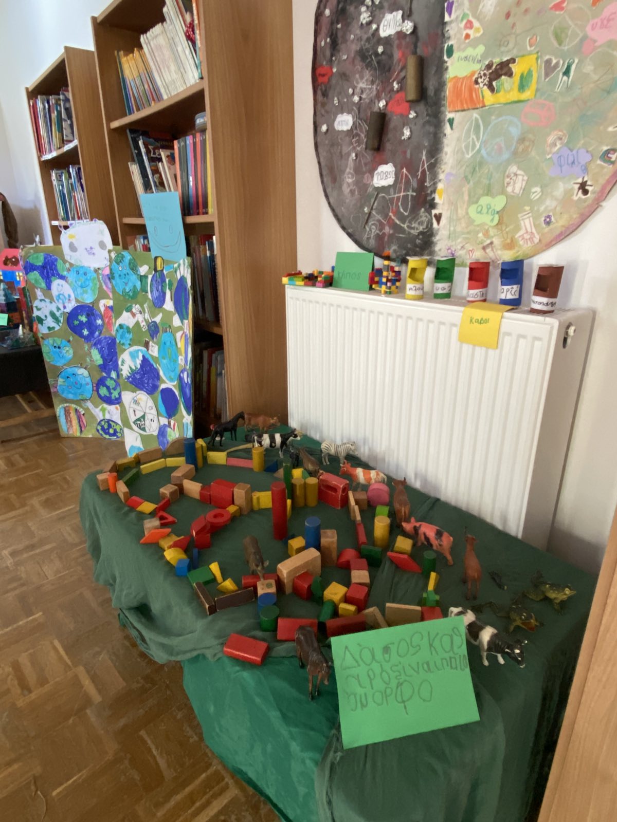 Επόμενος σταθμός η εντυπωσιακή έκθεση με δικά μας έργα φτιαγμένα από αγάπη. Μια έκθεση γεμάτη από ανακυκλώσιμες κατασκευές , αφίσες με την χαρούμενη και τη λυπημένη Γη, ζωγραφιές με θέμα το περιβάλλον, αυτοσχέδιες δημιουργίες από τουβλάκια, μαγνητάκια και πλαστελίνη, ένα τρισδιάστατο δέντρο γεμάτο από τα δικά μας μηνύματα για την προστασία των δασών, καθώς και μια γωνιά για παρατήρηση εντόμων με μικροσκόπιο το οποίο ξύπνησε μέσα μας τον μικρό επιστήμονα φέρνοντάς μας πιο κοντά στον μικρόκοσμο της φύσης.