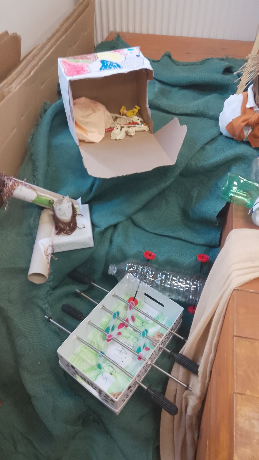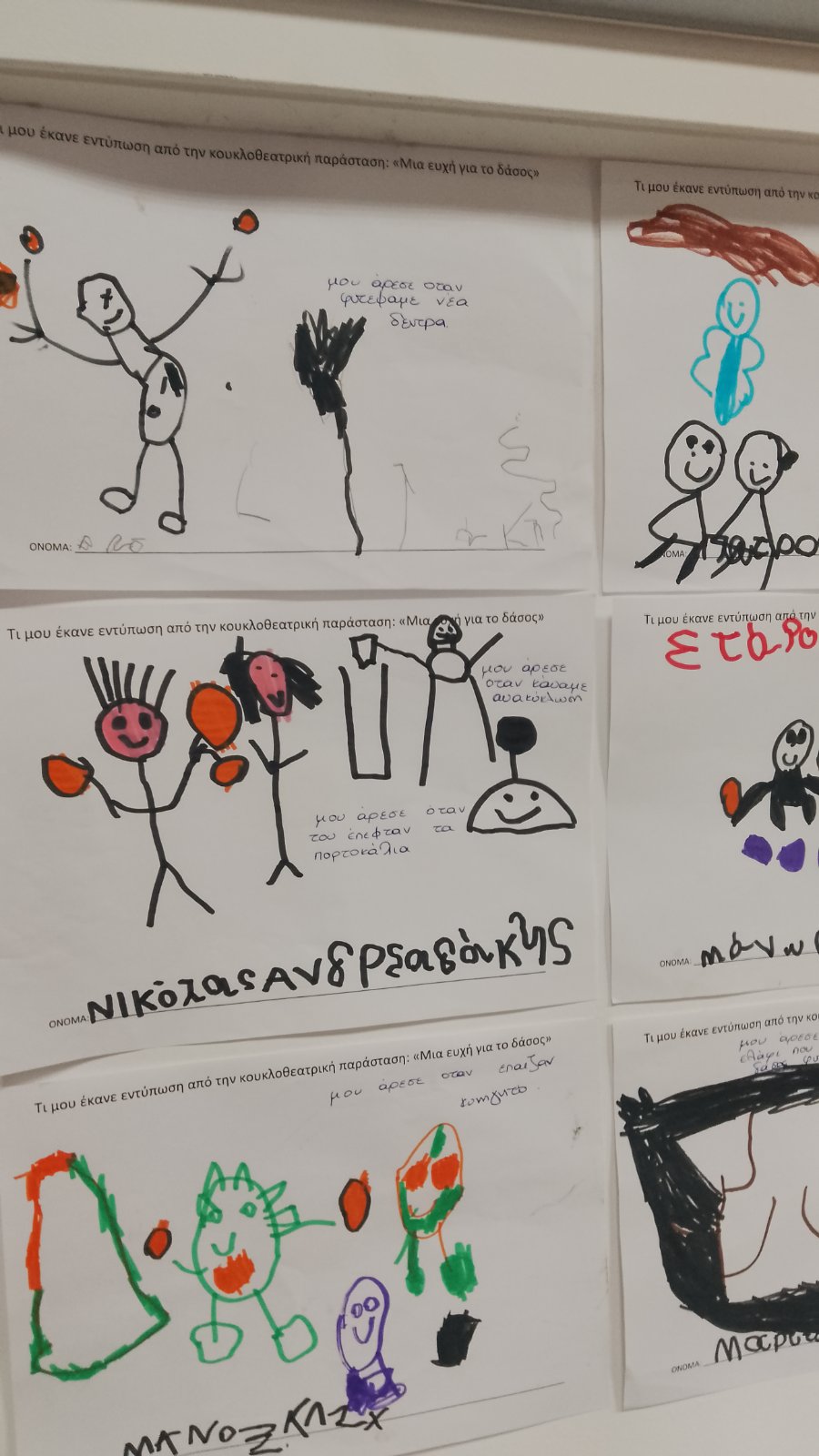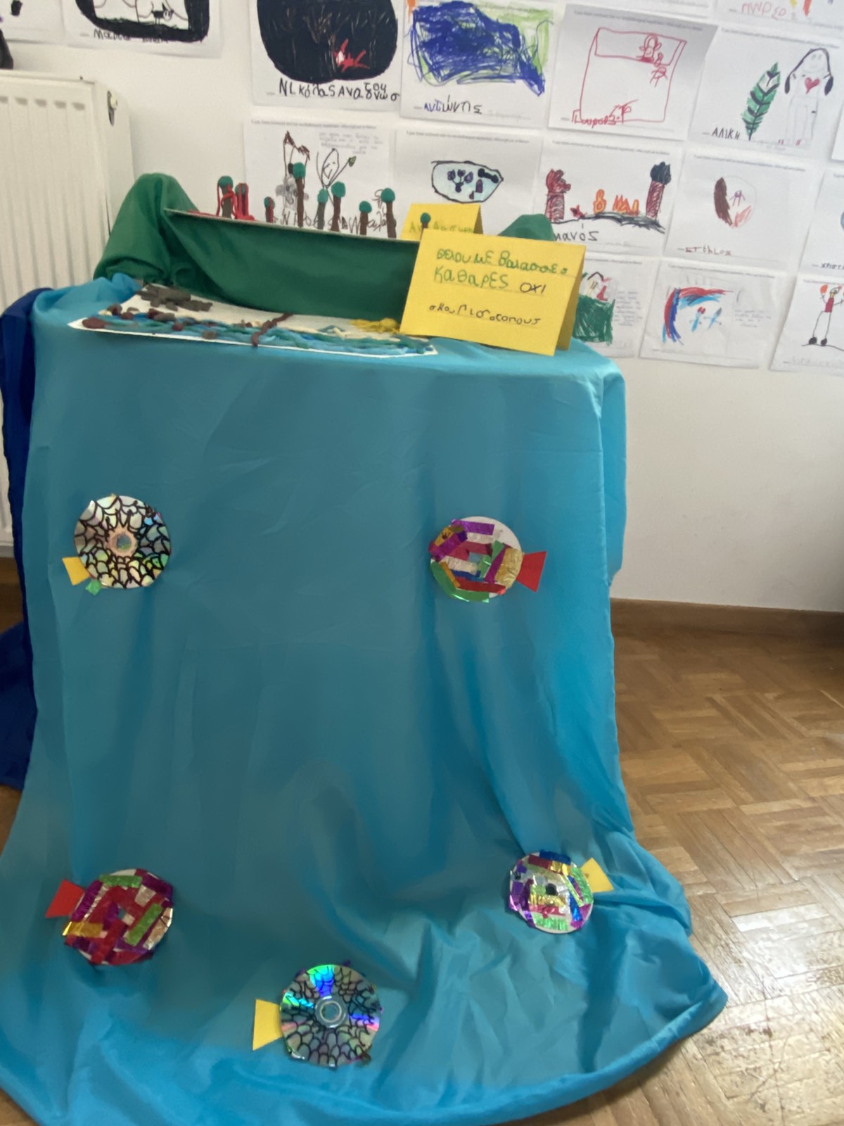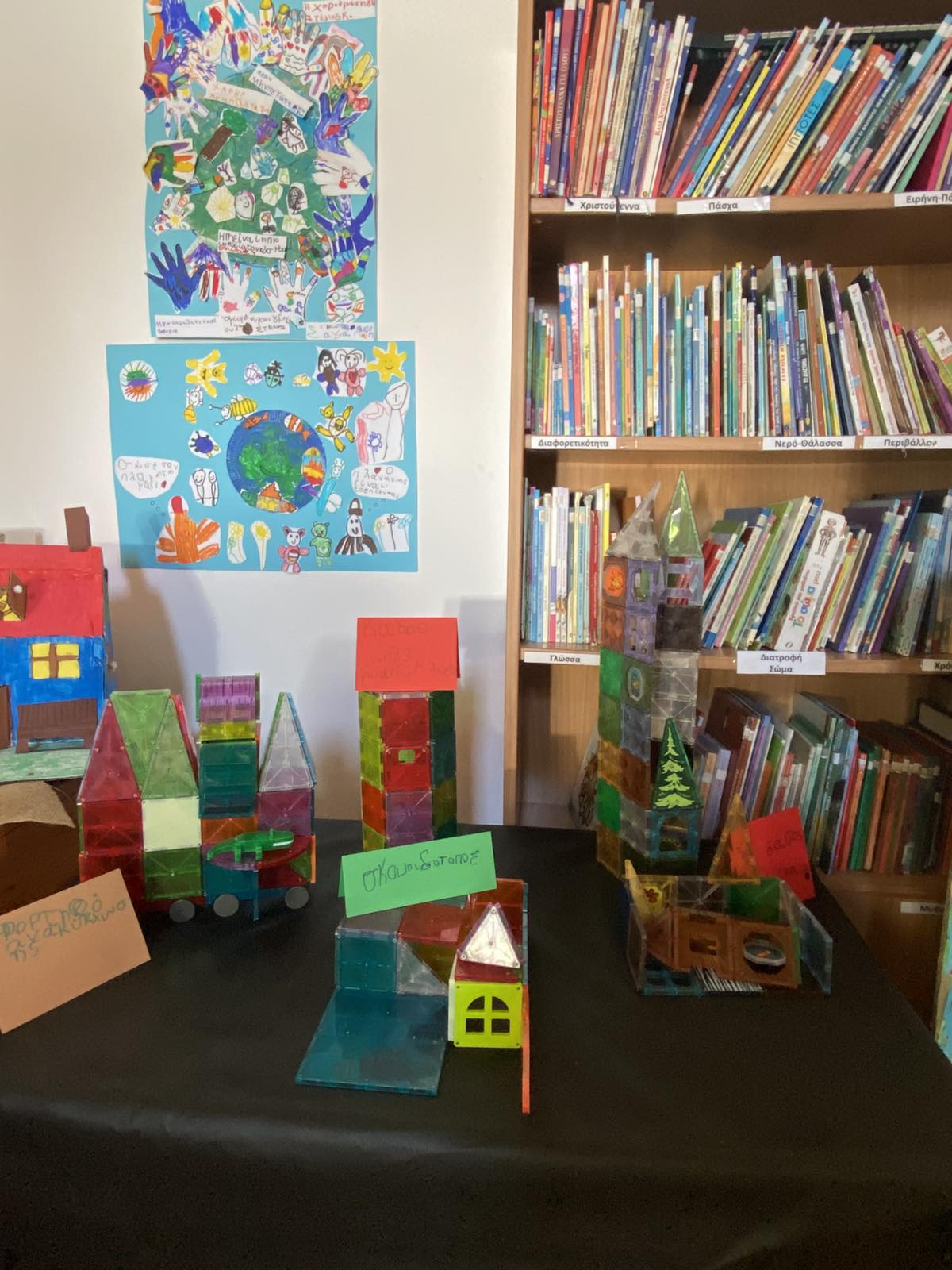 Επόμενος σταθμός η εντυπωσιακή έκθεση με δικά μας έργα φτιαγμένα από αγάπη. Μια έκθεση γεμάτη από ανακυκλώσιμες κατασκευές , αφίσες με την χαρούμενη και τη λυπημένη Γη, ζωγραφιές με θέμα το περιβάλλον, αυτοσχέδιες δημιουργίες από τουβλάκια, μαγνητάκια και πλαστελίνη, ένα τρισδιάστατο δέντρο γεμάτο από τα δικά μας μηνύματα για την προστασία των δασών, καθώς και μια γωνιά για παρατήρηση εντόμων με μικροσκόπιο το οποίο ξύπνησε μέσα μας τον μικρό επιστήμονα φέρνοντάς μας πιο κοντά στον μικρόκοσμο της φύσης.