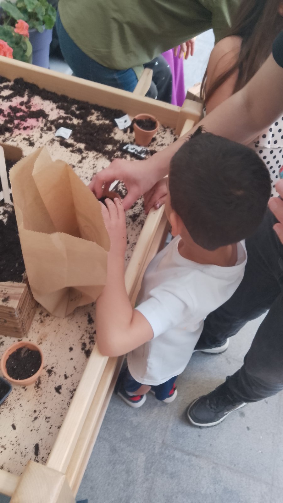 Περάσαμε από το σταθμό με το φύτεμα σπόρων αγγουριού όπου με αγάπη και φροντίδα φυτέψαμε μέσα σε γλαστράκι. Αγγίξαμε με τα χεράκια μας το χώμα, που τόσο μας αρέσει, και υποσχεθήκαμε να το φροντίζουμε και να δείχνουμε σεβασμό στη γη που μας προσφέρει!