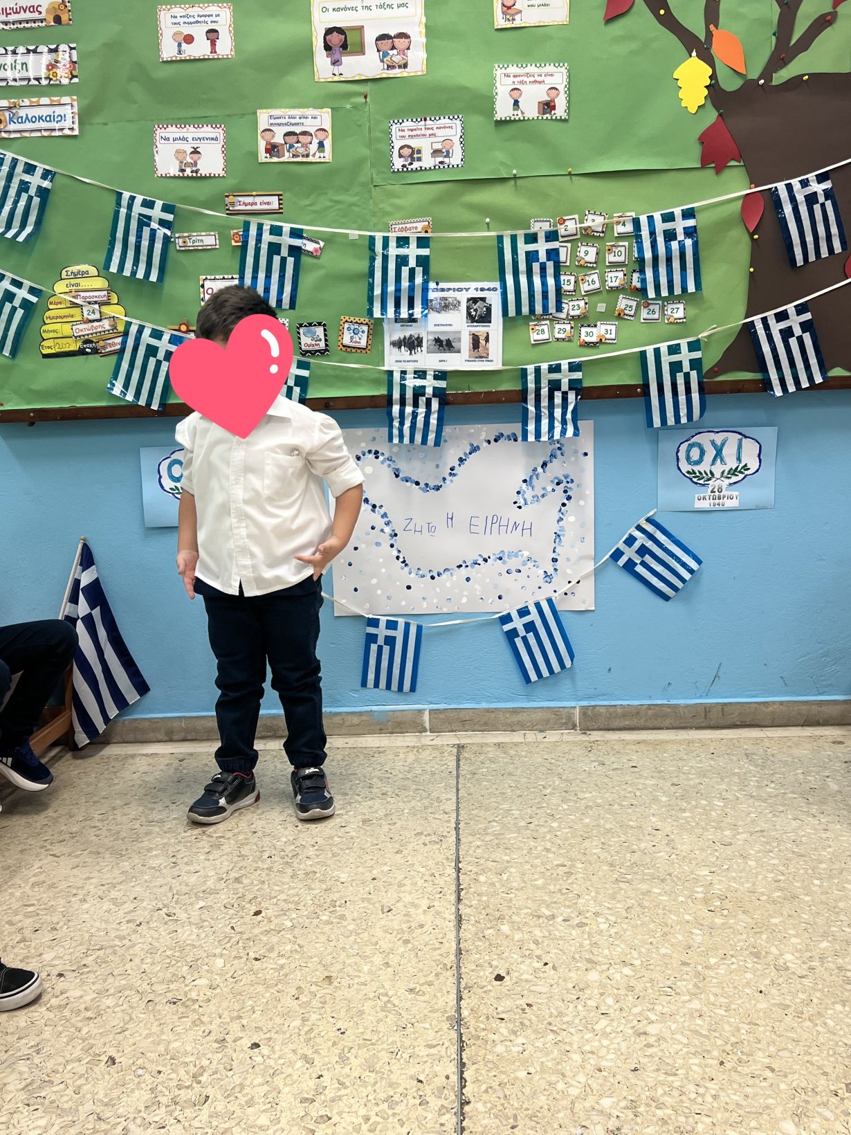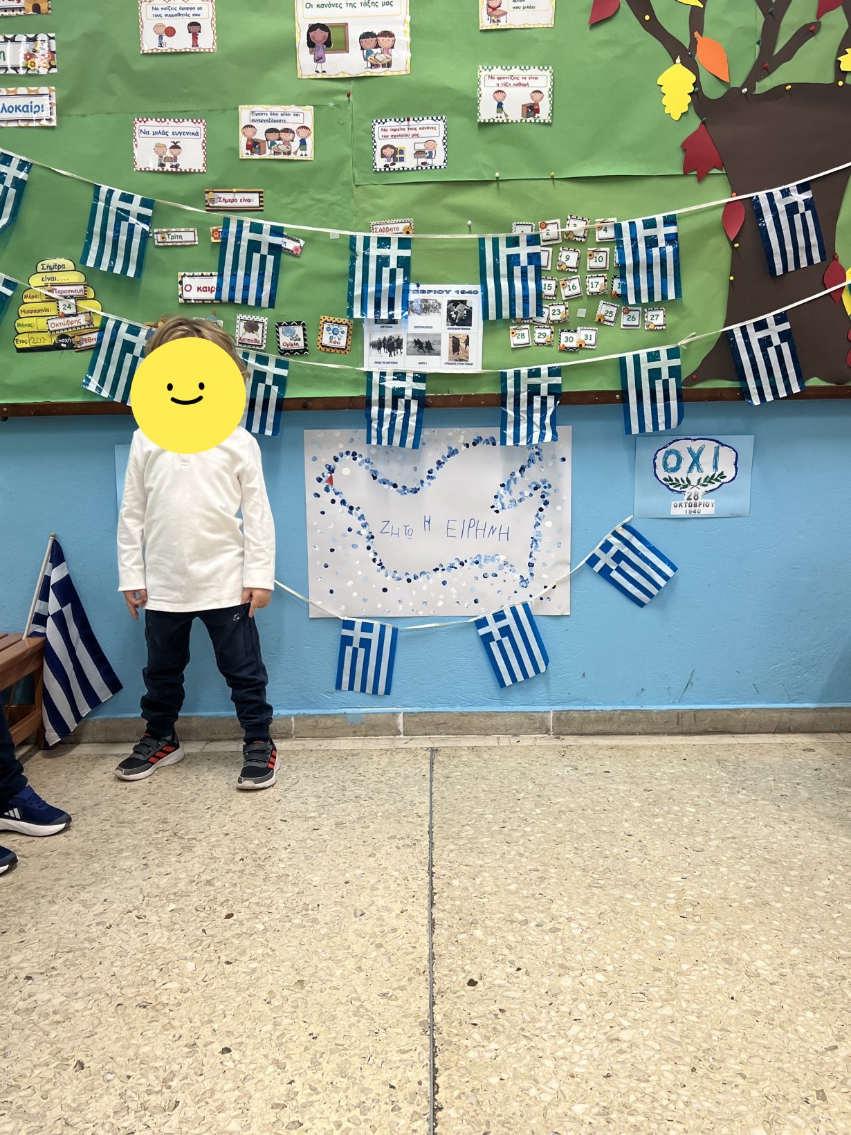 Οι μικροί μας μαθητές γιόρτασαν με υπερηφάνεια την Εθνική επέτειο της 28ης Οκτωβρίου, τιμώντας τους ήρωες του 1940 που αγωνίστηκαν για την ελευθερία και την πατρίδα. Τα παιδιά μας συμμετείχαν με ενθουσιασμό και συγκίνηση απαγγέλοντας τα ποιήματά τους και τραγουδώντας ενωμένοι τα επετειακά τραγούδια. Επιπροσθέτως, τα παιδιά ασχολήθηκαν με δραστηριότητες πρώτης γραφής ανασυνθέτοντας τις λέξεις ‘Πόλεμος, Αέρα, Όχι’ καθώς επίσης και με δραστηριότητες μέτρησης των λωρίδων της Εθνικής μας σημαίας όπου αφού τις μέτρησαν κλήθηκαν να τις χωρίσουν σε μεγάλες και μικρές συγκρίνοντας έτσι τα μήκη αυτών. Η κατασκευή για την Εθνική επέτειο, ήταν το καταδρομικό πλοίο ‘Έλλη” όπου βυθίστηκε από το Ιταλικό υποβρύχιο τον 15 Αύγουστο του 1940 .Το μήνυμα του ΟΧΙ και η σημασία για ενότητα, Ειρήνη και ελευθερία έγιναν αντιληπτά από τους μαθητές.
