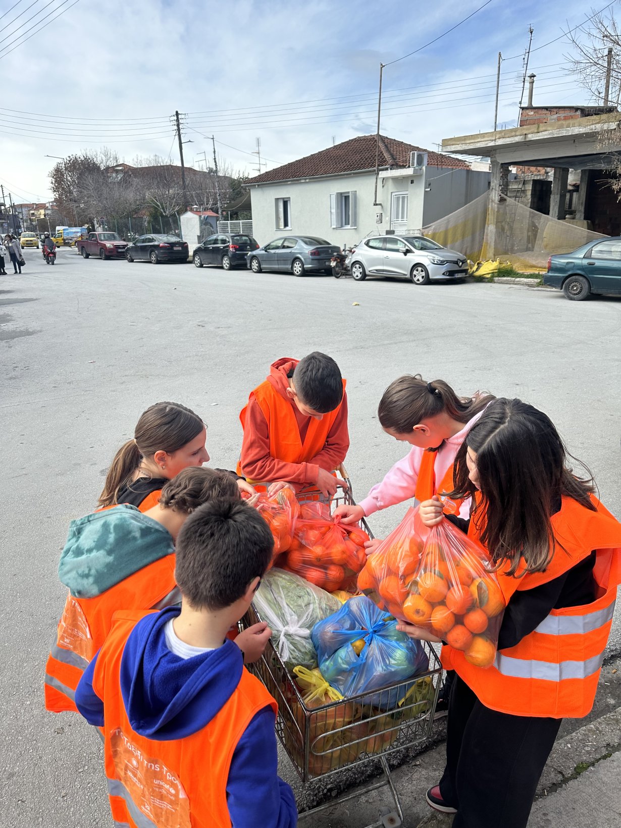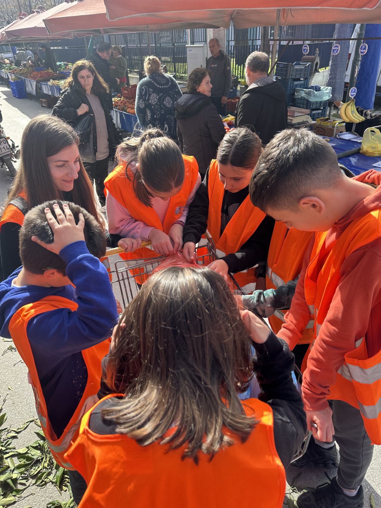 Αφού φόρεσαν τα γιλέκα του προγράμματος, συνοδεία της υπεύθυνης του προγράμματος κ. Μπιζιργιάννη Βάνας, τοπικής συντονίστριας της Περιφέρειας Θεσσαλίας του “Μπορούμε” και της υπεύθυνης εκπαιδευτικού κ. Κρεμέτη Ασημίνας, επισκέφτηκαν τη λαϊκή αγορά της συνοικίας του σχολείου, μίλησαν με τους μικροπωλητές, περισυνέλλεξαν τρόφιμα και τα προσέφεραν στο κοινωνικό παντοπωλείο.