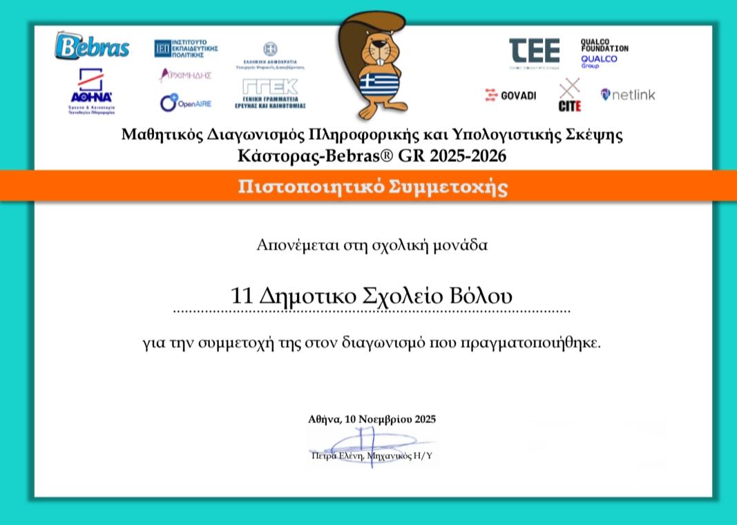 Διαγωνισμός Bebras 2025-2026 School certificate-1