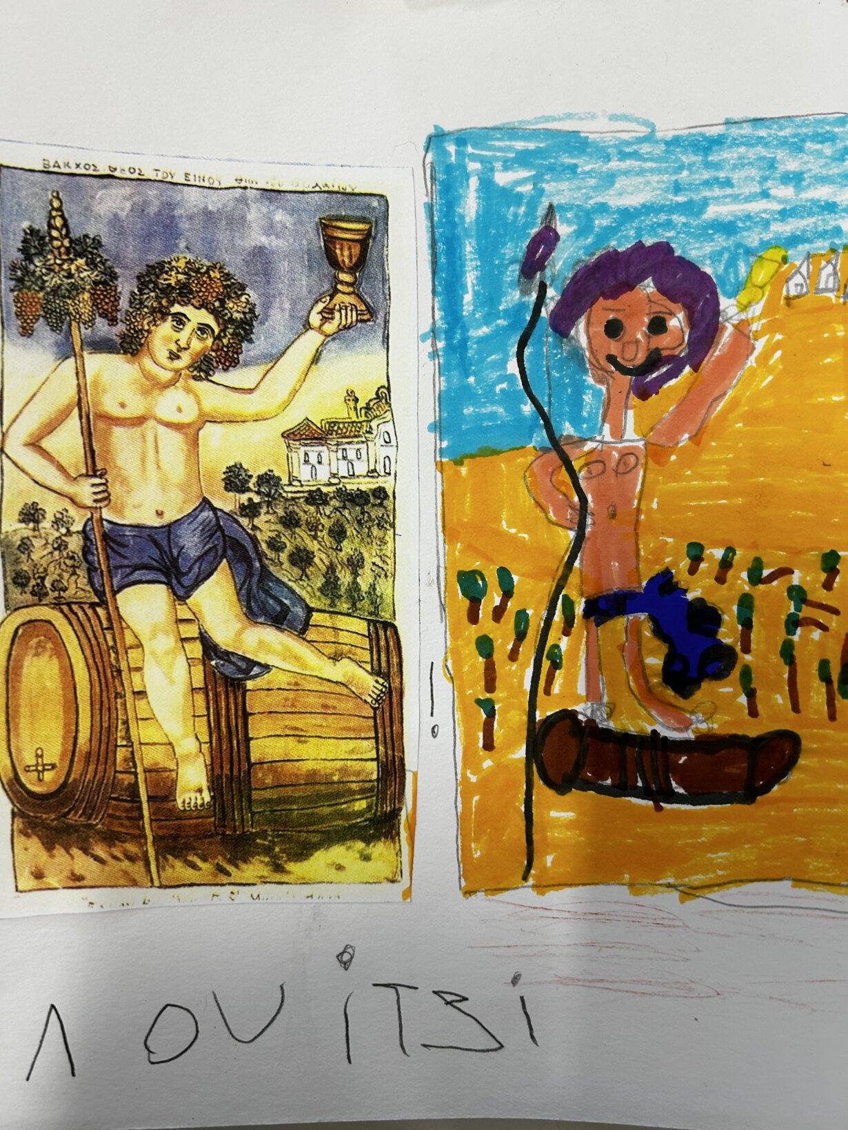 Ο Βάκχος του Θεόφιλου Χατζημιχαήλ ζωγραφισμένος με μαρκαδόρους