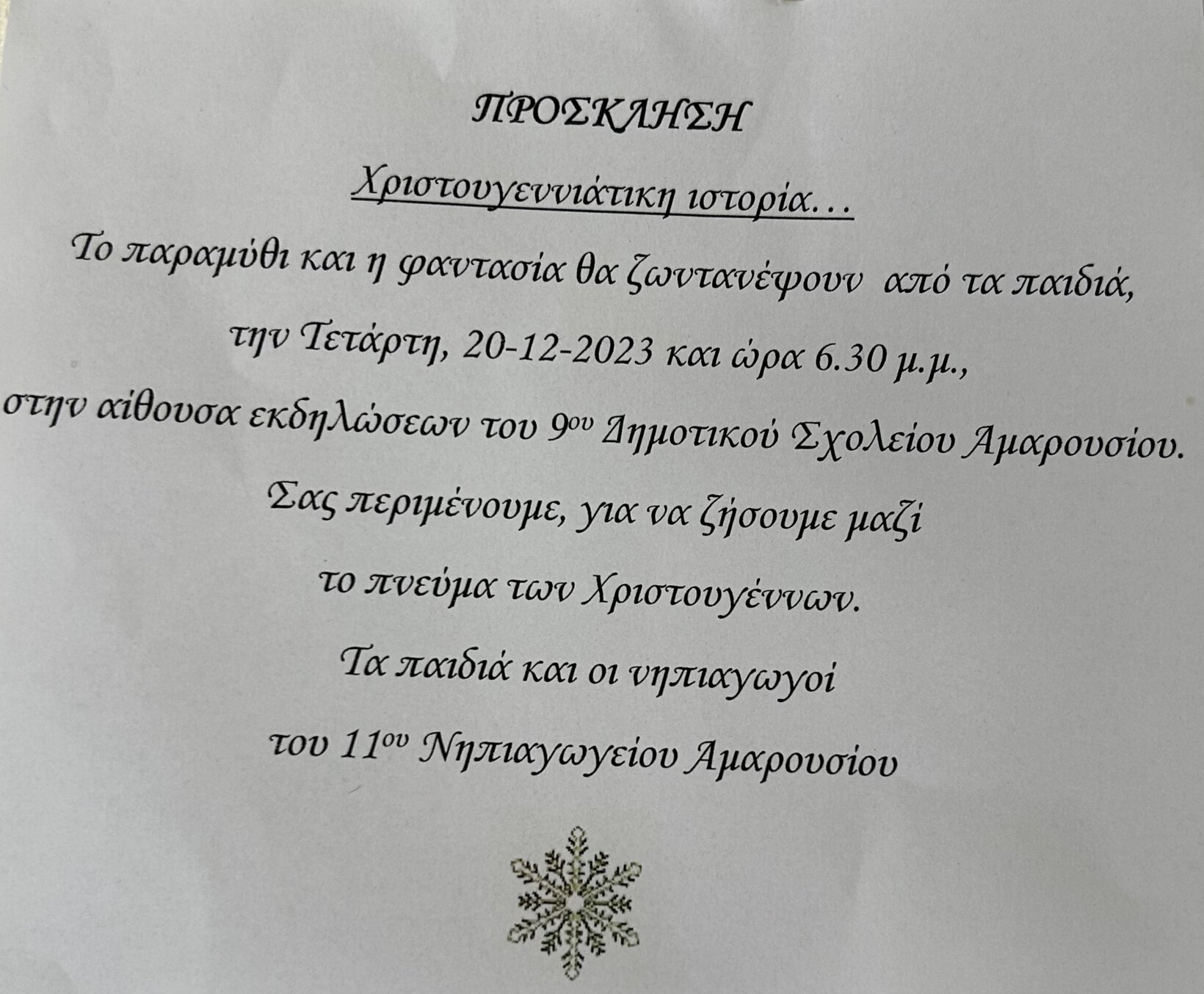 Ευχόμαστε σε όλες τις οικογένειες να έχετε ωραίες στιγμές με τα παιδιά και τους αγαπημένους σας! Καλές γιορτές!