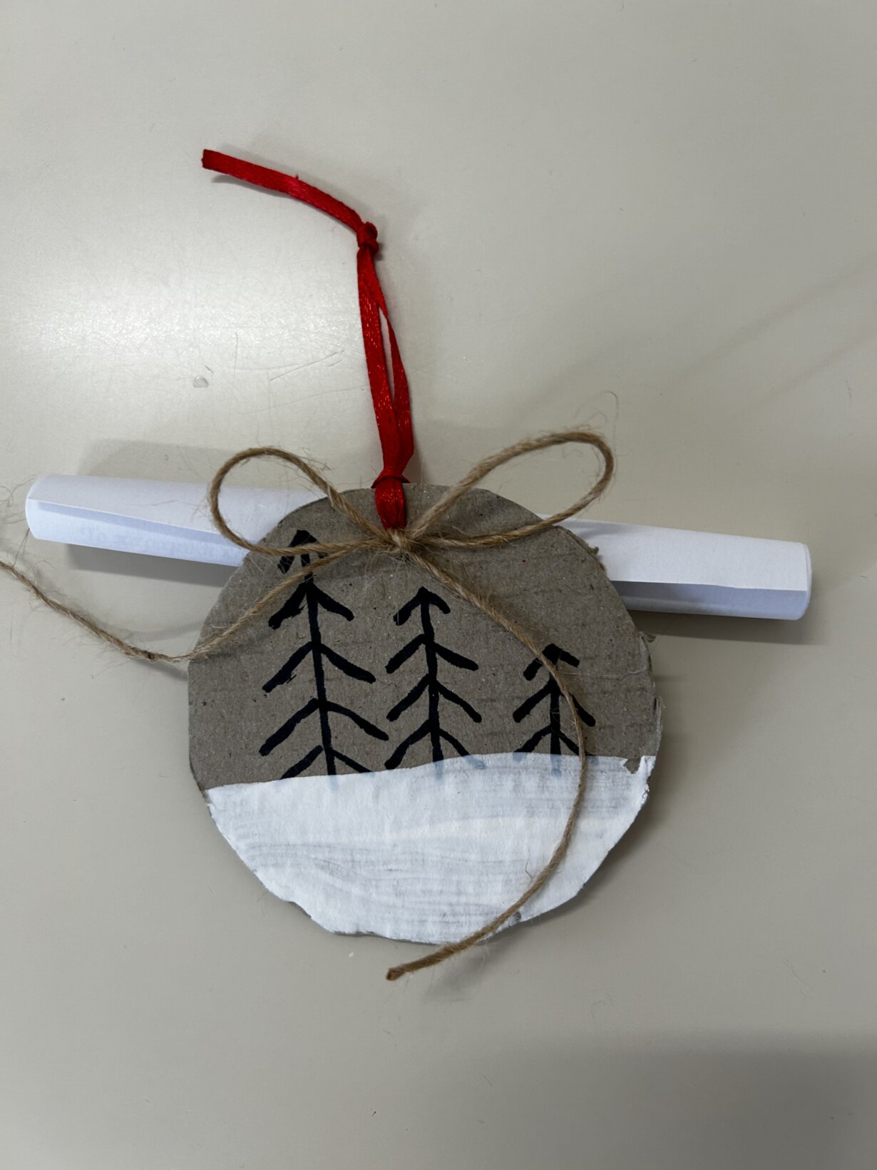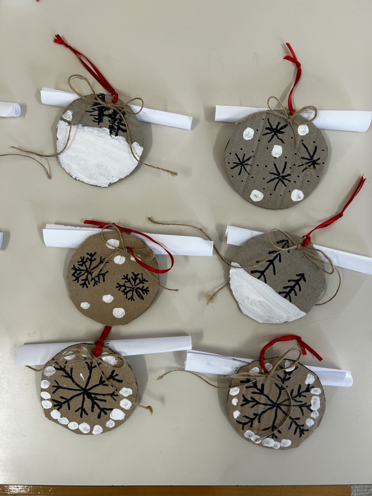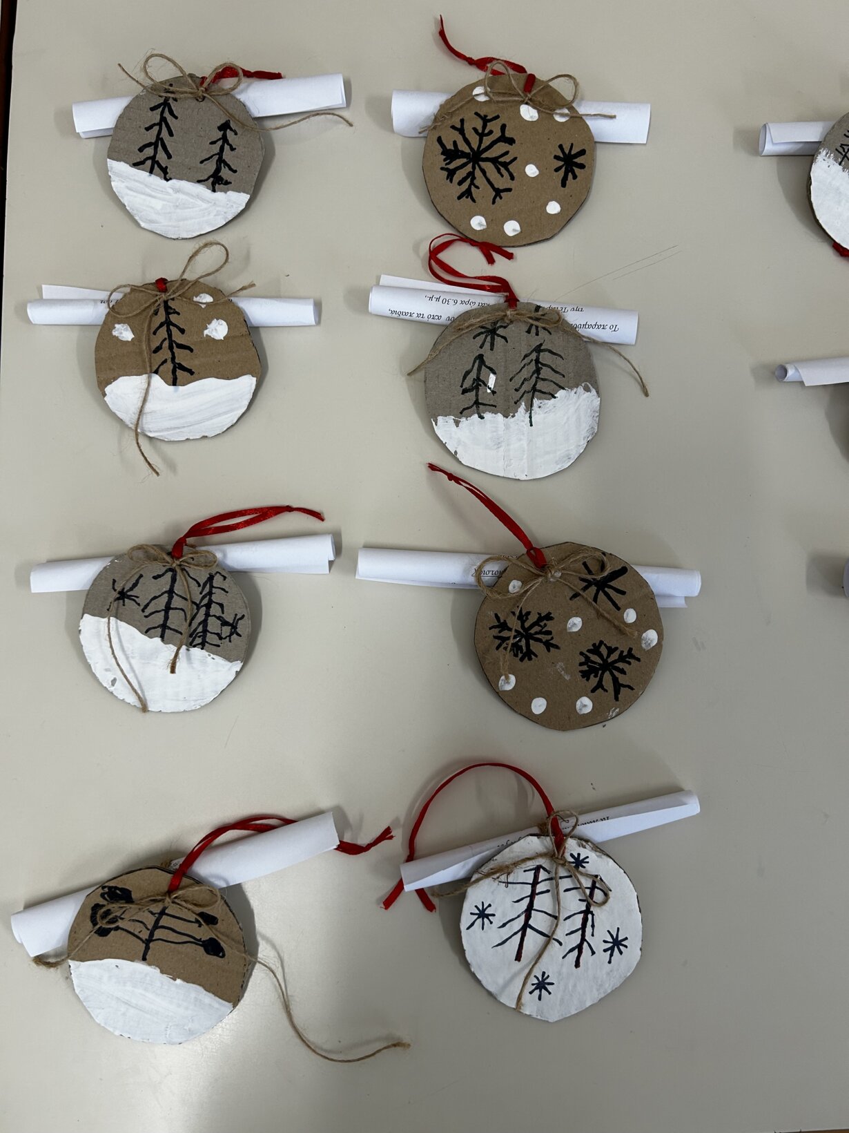 Στολίδια για το Χριστουγεννιάτικο δέντρο μας από χαρτόκουτο τέμπερες ,μαρκαδόρο.