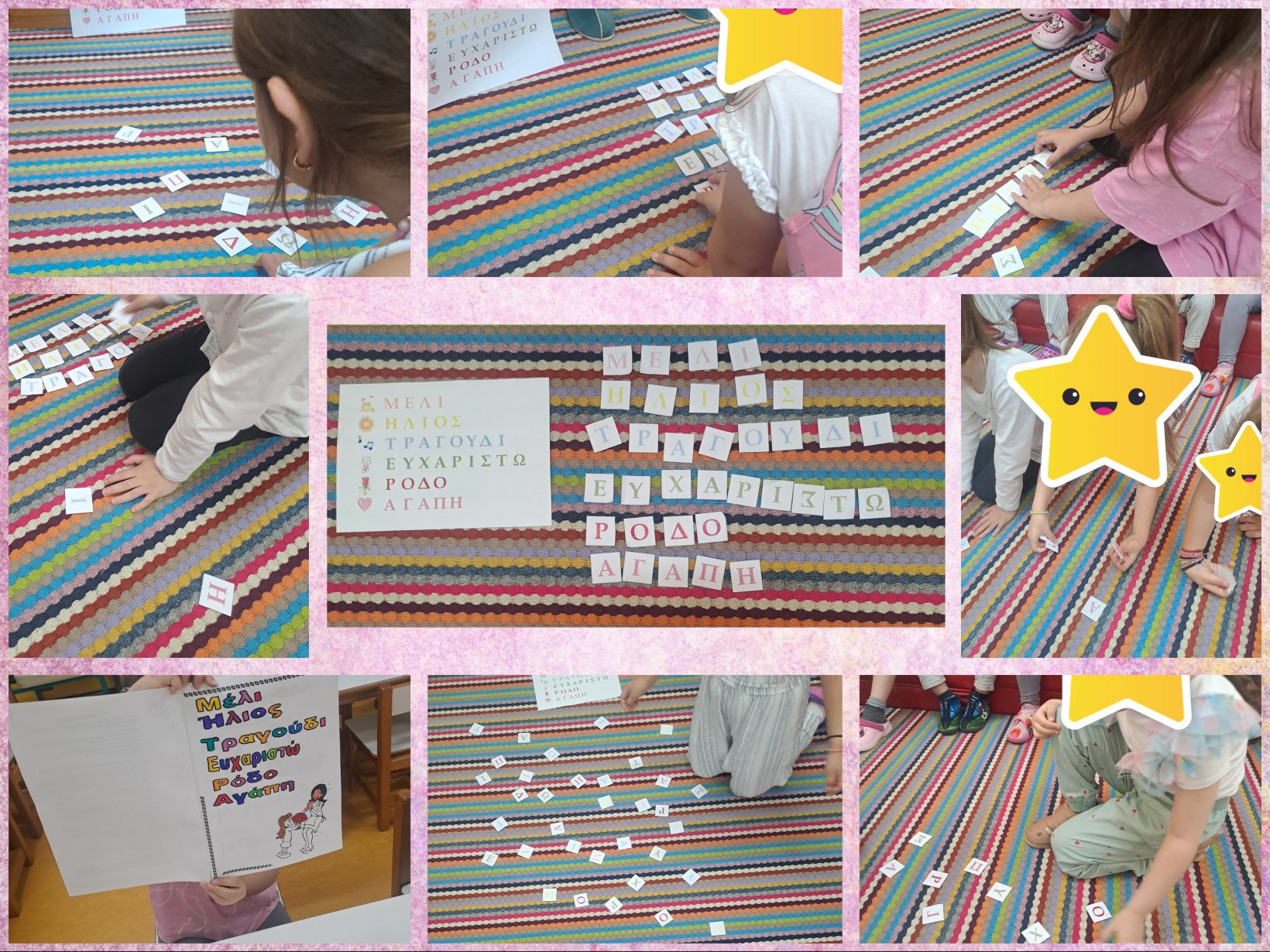 Μέσα από το παιδικό βιβλίο της Βαρελλά Αγγελικής από τις εκδόσεις Μίλητος «Πώς γράφεται η λέξη μητέρα;» σχηματίσαμε με όλα τα συστατικά την ιερή αυτή λέξη.
