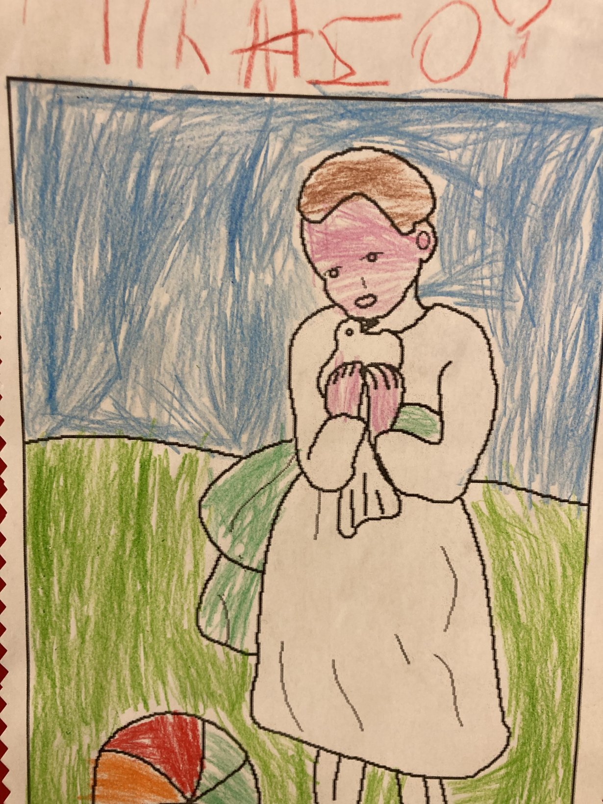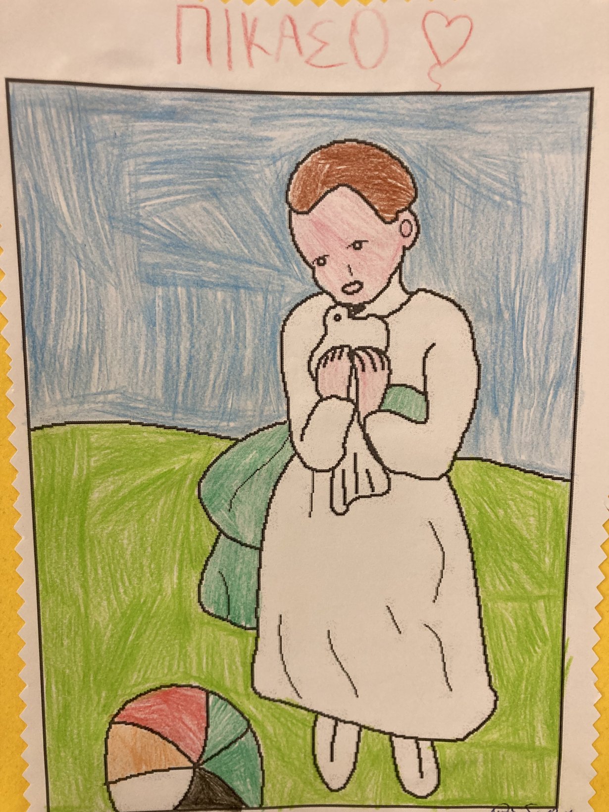 Τα παιδιά εμπνεύστηκαν από το έργο του μεγάλου καλλιτέχνη Πάμπλο Πικάσο και δημιούργησαν τις δικές τους ζωγραφιές. Το περιστέρι συμβολίζει την ειρήνη, την αγάπη και την ελπίδα για έναν καλύτερο κόσμο. Με απλότητα, φαντασία και καθαρές γραμμές, οι μικροί μας ζωγράφοι αποτύπωσαν τα δικά τους συναισθήματα. Μέσα από τα χρώματα και τα χαμόγελά τους, τα παιδιά στέλνουν ένα δυνατό μήνυμα: Η ειρήνη ξεκινά από την καρδιά του κάθε παιδιού.
