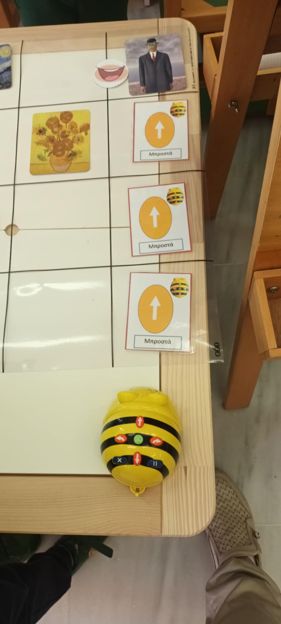 Απολαύσαμε την ενεργοποίηση των καλλιτεχνικών μας αισθήσεων! Η Beebot μας ενεργοποίησε τις αισθήσεις της και σεργιάνισε στο πλέγμα εικαστικών διάσημων δημιουργιών με επιτυχία, ακολουθώντας τον κώδικα όπως την προγραμμάτισαν τα μικρά μας νήπια!
