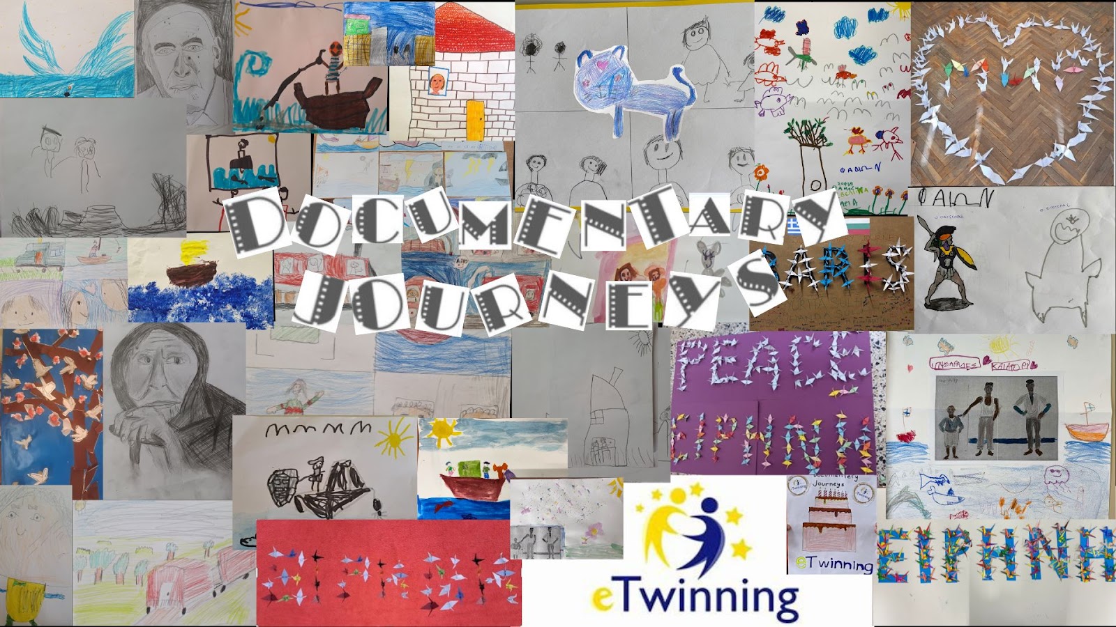 Η λέξη “ΕΙΡΗΝΗ- PIECE” δημιουργικά φτιαγμένη από τους μαθητές φίλους-μέλη του project σε ένα συνεργατικό κοινό έργο: (κλικ στο σύνδεσμο κάτω Δείτε το στο canva com)