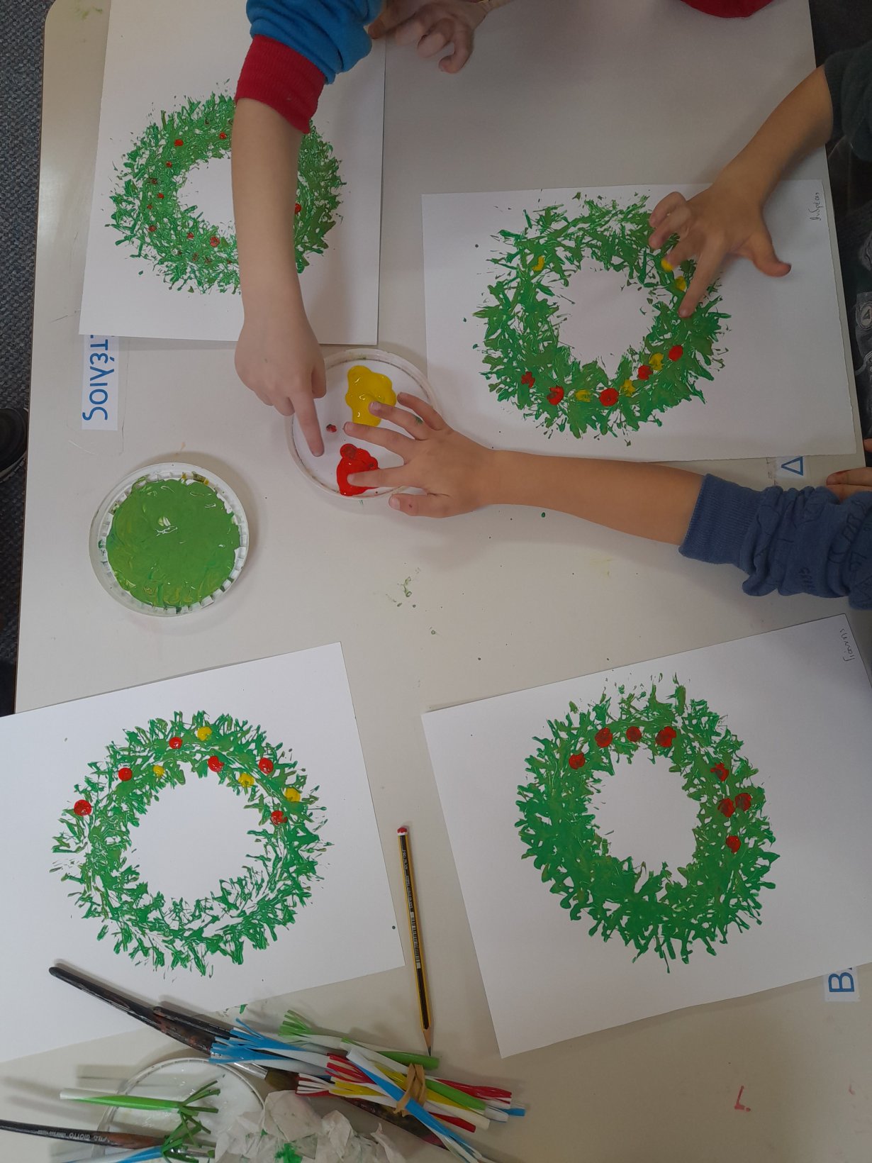 μπατονέτα, δάχτυλο) για τη δημιουργία χριστουγεννιάτικων καρτών…