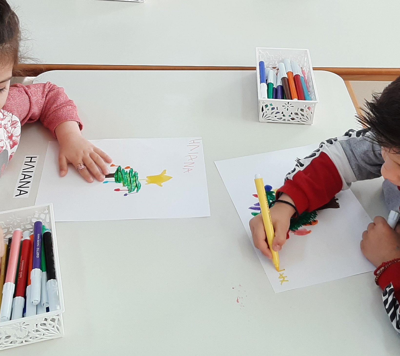 Τα νήπια ζωγραφίζουν και γράφουν τις ευχές τους,