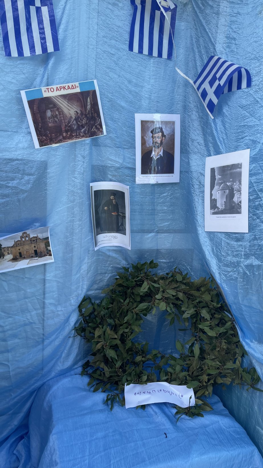 Σημαντική μέρα για την πόλη μας σήμερα, ημέρα γιορτής, ημέρα χαράς και υπερηφάνειας. Ημέρα μνήμης της ιστορίας μας, της ιστορίας που μας άφησαν οι προ-προπαππούδες μας! Αν και ο καιρός δεν μας επέτρεψε να κατηφορίσουμε στην πόλη και να σταθούμε μπροστά στο άγαλμα του Κωστή Γιαμπουδάκη ώστε να τους τιμήσουμε για την ηρωική πράξη τους και την αυτοθυσία τους,∙ καταφέραμε να στήσουμε το δικό μας ηρώο, παρελάσαμε στο προαύλιο του σχολείου και καταθέσαμε το στεφάνι μας.