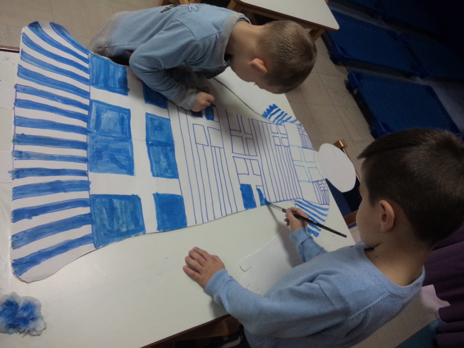 Με ομαδική δουλειά και συνεργασία με το άλλο τμήμα, στόλισαν υπέροχα το σκηνικό μας!!