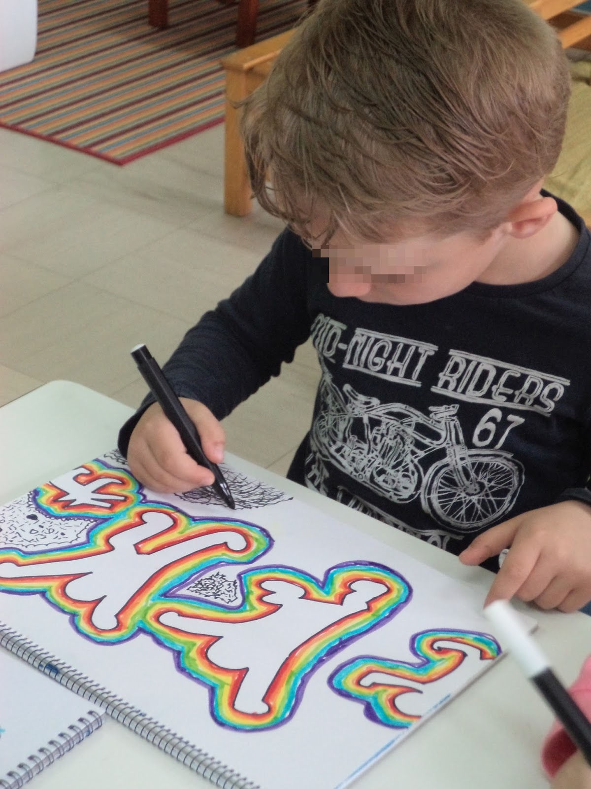 Η δυναμική της τέχνης του Keith Haring αποτυπώθηκε στις ζωγραφιές των παιδιών, στην καθημερινότητά τους.