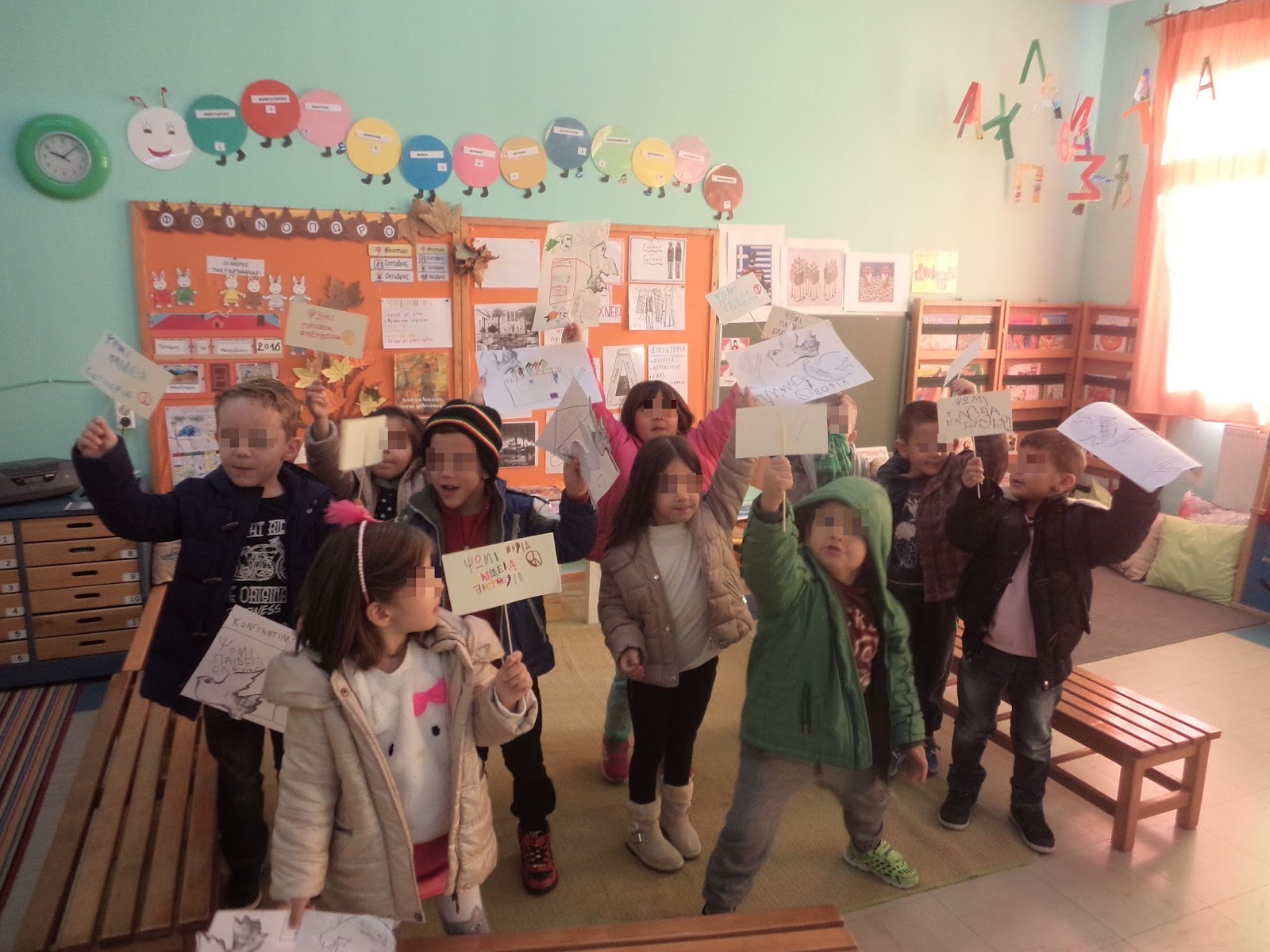 Στην προσπάθεια να προσεγγίσουμε τα γεγονότα του πολυτεχνείου χρησιμοποιήσαμε προσεγγίσεις που ταιριάζουν στην προσχολική ηλικία καθώς οι έννοιες της δημοκρατίας- δικτατορίας- ελευθερίας είναι αφηρημένες, σύνθετες και δύσκολες!