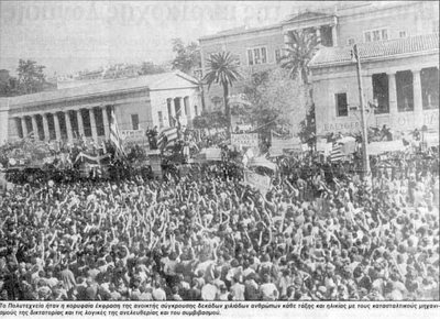 Τα τανκ πλησιάζουν το Πολυτεχνείο.