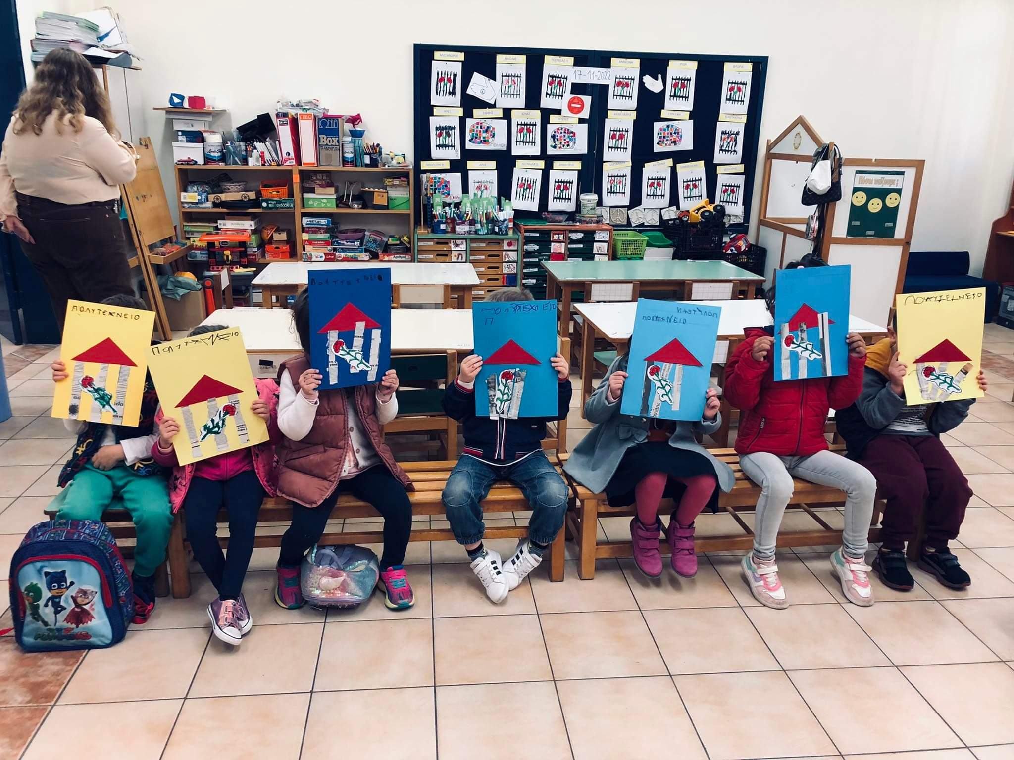 Στις 17 Νοεμβρίου, γιορτάσαμε στο νηπιαγωγείο μας την επέτειο του πολυτεχνείου. Θυμηθήκαμε τα γεγονότα εκείνης της ημέρας, τραγουδήσαμε, φωνάξαμε όπως οι φοιτητές το σύνθημα ” ψωμί, παιδεία ελευθερία” και συμφωνήσαμε ότι είναι πολύ όμορφο να είμαστε ελεύθεροι να κάνουμε αυτό που θέλουμε χωρίς όμως να ενοχλούμε τον διπλανό μας.