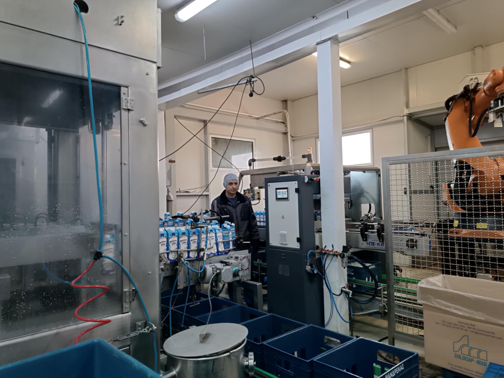 Την Πέμπτη 16 Ιανουαρίου πραγματοποιήθηκε εκπαιδευτική επίσκεψη των μαθητών των Γ’ και Δ’ τάξεων του σχολείου μας στη Γαλακτοκομική εταιρεία “Μανδρέκας “στην περιοχή μας που αποτέλεσε μία μοναδική εμπειρία για όλους μας. Εκεί μας υποδέχτηκαν οι υπάλληλοι της εταιρείας και αφού μας καλωσόρισαν μας έδωσαν και φορέσαμε “ειδικές στολές” και σκουφάκια. Στη συνέχεια ο κύριος Βασίλης Μανδρέκας μας ξενάγησε στους χώρους της εταιρείας , όπου οι μαθητές είχαν την ευκαιρία να δουν από κοντά τη διαδικασία παραγωγής γαλακτοκομικών προϊόντων, να μάθουν για τις πρώτες ύλες, τις τεχνολογίες που χρησιμοποιούνται και τη σημασία της ποιότητας των προϊόντων. Στο τέλος κάθε παιδί πήρε μία τσάντα με προϊόντα της εταιρείας. Ευχαριστούμε πολύ όλο το προσωπικό της εταιρείας για την ευγένεια τους, την υπομονή τους και την άψογη φιλοξενία τους.