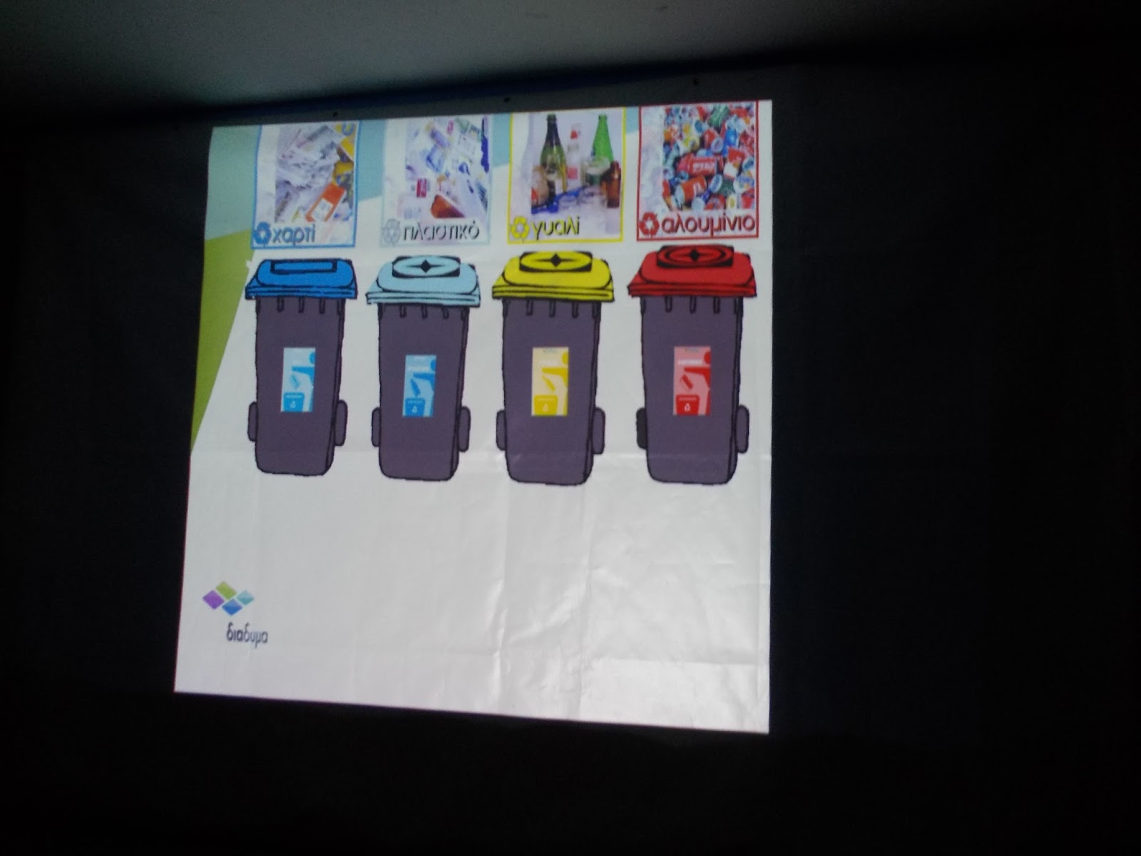 Την Πέμπτη 29/3/2018 παρουσιάστηκε εκπαιδευτικό πρόγραμμα από τη Διάδυμα, στην υλοποίηση του οποίου συμμετείχαν όλοι οι μαθητές του σχολείου μας. Σκοπός του περιβαλλοντικού προγράμματος ήταν η ευαισθητοποίηση, η υιοθέτηση καλών πρακτικών και η εδραίωση της ιδέας της ανακύκλωσης των υλικών, ώστε να καταστεί αυτή ως αυτονόητη καθημερινή πράξη.