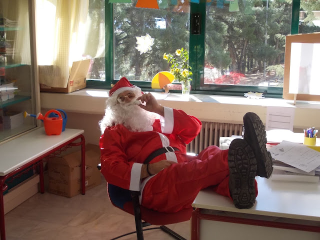 Οι μικροί μαθητές μας βίωσαν μια ασυνήθιστη ευχάριστη έκπληξη μόλις προσήλθαν στο σχολείο! Όλο το σχολείο αναδείκνυε χρώμα Χριστουγέννων: χριστουγεννιάτικες γιρλάντες, τραπέζια με ανθοσυνθέσεις, καθιστικό για τον Αη Βασίλη……..Η έκπληξη μεγάλωσε ακόμη περισσότερο όταν κατά τις 11.30 π.μ. βρέθηκαν κοντά στον Αη Βασίλη και τα ξωτικά! Φωτογραφήθηκαν μαζί του, του έδωσαν το γράμμα με τις επιθυμίες τους και γεύτηκαν τον πλούσιο χριστουγεννιάτικο μπουφέ με εδέσματα και ζεστή ρευστή σοκολάτα με άρωμα φράουλας! Και όλα αυτά χάρη στην πρωτοβουλία της Ομάδας Δράσης Γονέων του σχολείου μας που ανέλαβε την οργάνωση αυτής της ασυνήθιστης έκπληξης και τα διαχειριστικά έξοδα. Ευχαριστούμε θερμά τις μητέρες που συνέβαλαν στην ανάπτυξη θετικών συναισθημάτων και έδωσαν απερίγραπτη χαρά στα παιδιά μας!!!