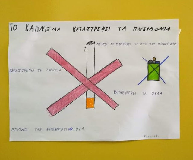 28 Ιανουαρίου 2021 Ευαισθητοποίηση των μαθητών/τριών Η δημιουργία αφισών από την ΣΤ τάξη συνέβαλε στην ενημέρωση και ευαισθητοποίηση όλων για τις καταστροφικές συνέπειες του καπνίσματος!!!