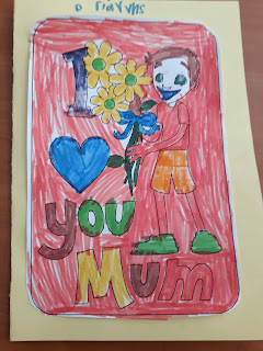 Κάρτες για τη γιορτή της μανούλας τους δημιούργησαν οι μικροί μαθητές της Α΄ τάξης στο μάθημα των Αγγλικών με την καθοδήγηση της κ. Χιώτη!!! Σας παραθέτουμε τις ευχές τους με τις οποίες εκφράζουν την απέραντη αγάπη για τη μανούλα τους :