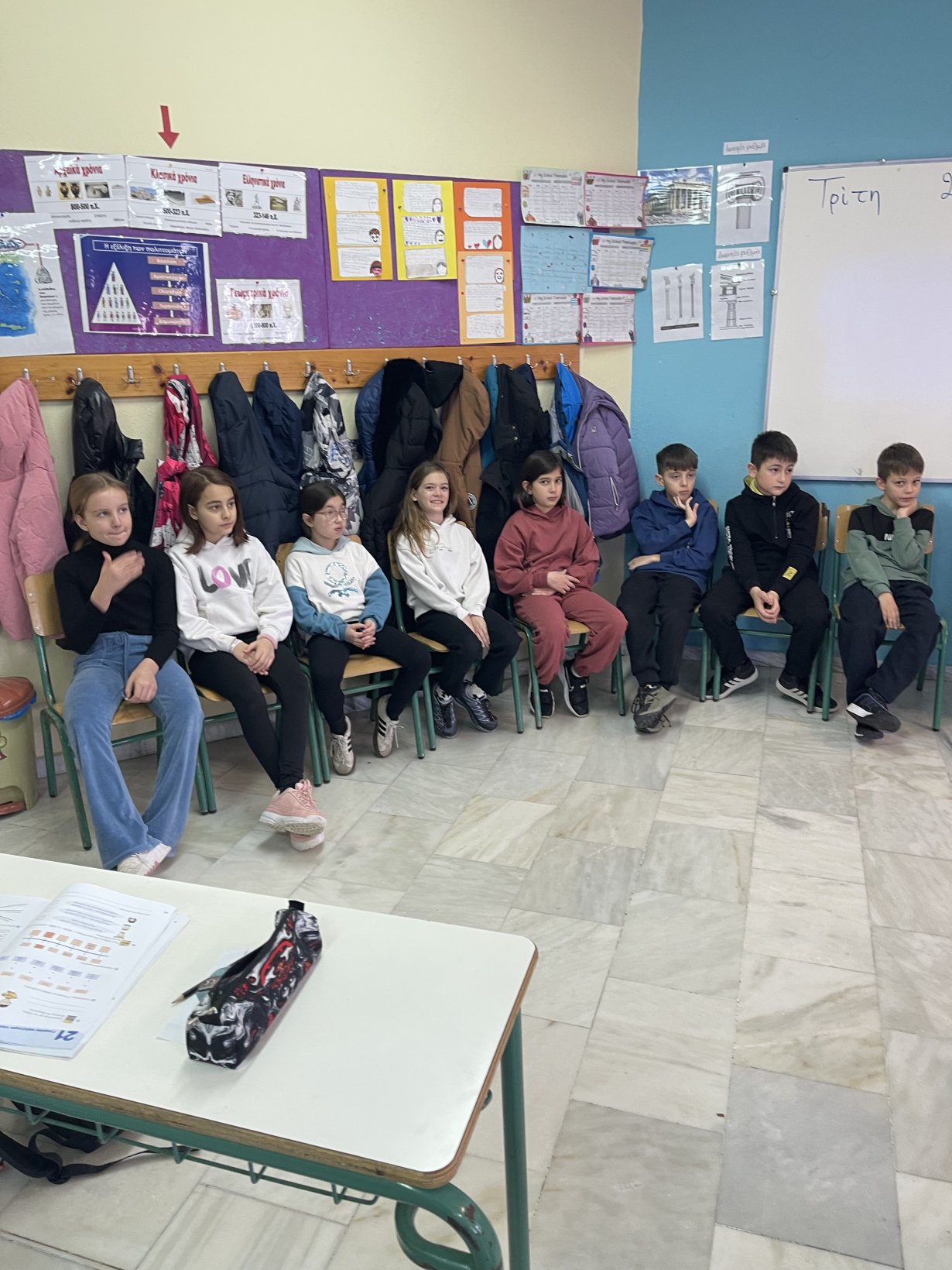 Οι μαθητές της Δ΄ τάξης μαζί με τη δασκάλα τους Στόγια Αικατερίνη και την κυρία Βασιλική Τσούκα, μίλησαν για τα συναισθήματα που έχουμε όταν σκεφτόμαστε ή ερχόμαστε στο σχολείο. Τα έγραψαν ανώνυμα σε ένα χαρτάκι. Τα θετικά συναισθήματα τα βάλαμε στο κίτρινο κουτί και τα αρνητικά στο μπλε. Έπειτα τα διαβάσαμε και συζητήσαμε για το σημαντικό ρόλο που παίζει η φιλία, η χαρά και η ασφάλεια στο χώρο του σχολείου .