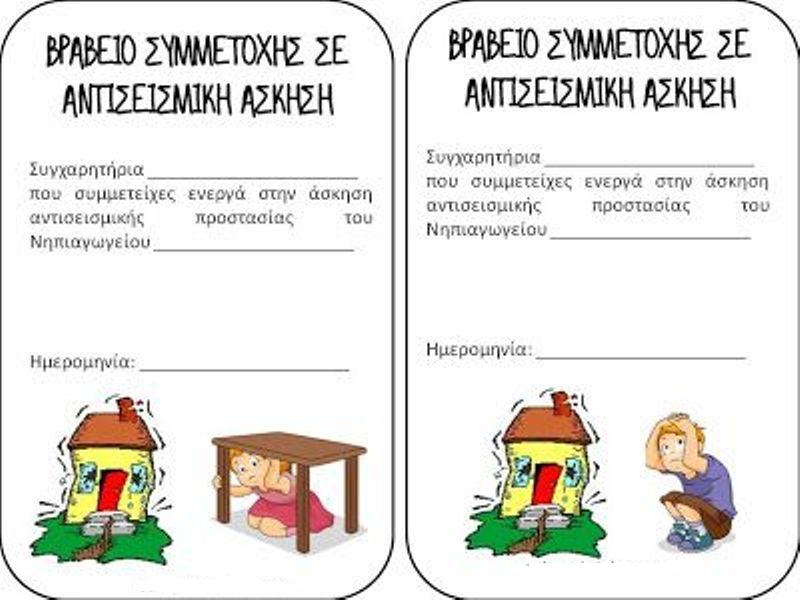 Σήμερα πραγματοποιήσαμε την τρίτη άσκηση σεισμού στην τάξη μας. Τα παιδιά με υπευθυνότητα, συνεργάστηκαν μεταξύ τους, ακολούθησαν τις οδηγίες και προστάτεψαν τους εαυτούς τους , καλύπτοντας το σώμα και κυρίως το κεφάλι τους κάτω από τα τραπέζια. Στη συνέχεια, με την οδηγία των εκπ/κών, βγήκαν με ησυχία και έκαναν τρενάκι μπροστά από την πόρτα. Η προσπάθειά τους επιβραβεύτηκε από το αντίστοιχο βραβείο!