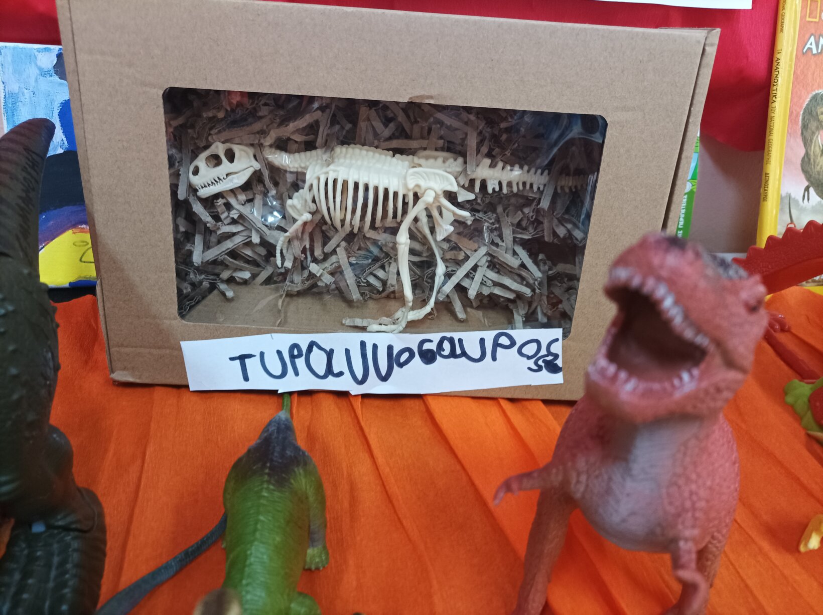 Και βέβαια δε θα μπορούσε να λείψει από την ομάδα μας μια μικρή ανασκαφή! Τα παιδιά, δούλεψαν ως παλαιοντολόγοι για να ανακαλύψουν τα οστά του δεινόσαυρου!