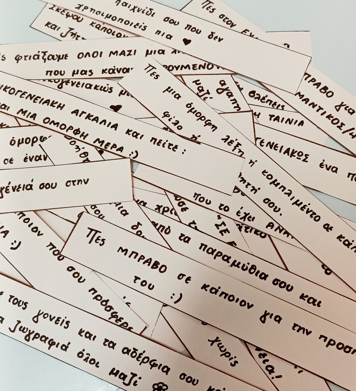 Πρόκειται για 24 γλυκές προτροπές: άλλες αφορούν ομαδικές δραστηριότητες που θα μας βοηθήσουν να δεθούμε περαιτέρω ως ομάδα στην τάξη, άλλες είναι ιδέες για μικρές στιγμές που μπορούμε να μοιραστούμε με την οικογένειά μας—γιατί μέσα στο τρέξιμο της καθημερινότητας συχνά ξεχνάμε να παίξουμε και να περάσουμε χρόνο με τα παιδιά μας. Υπάρχουν επίσης προτροπές που μας θυμίζουν να κάνουμε όμορφες πράξεις, καλλιεργώντας την ενσυναίσθηση και τη ζεστασιά που φέρνει η εποχή.