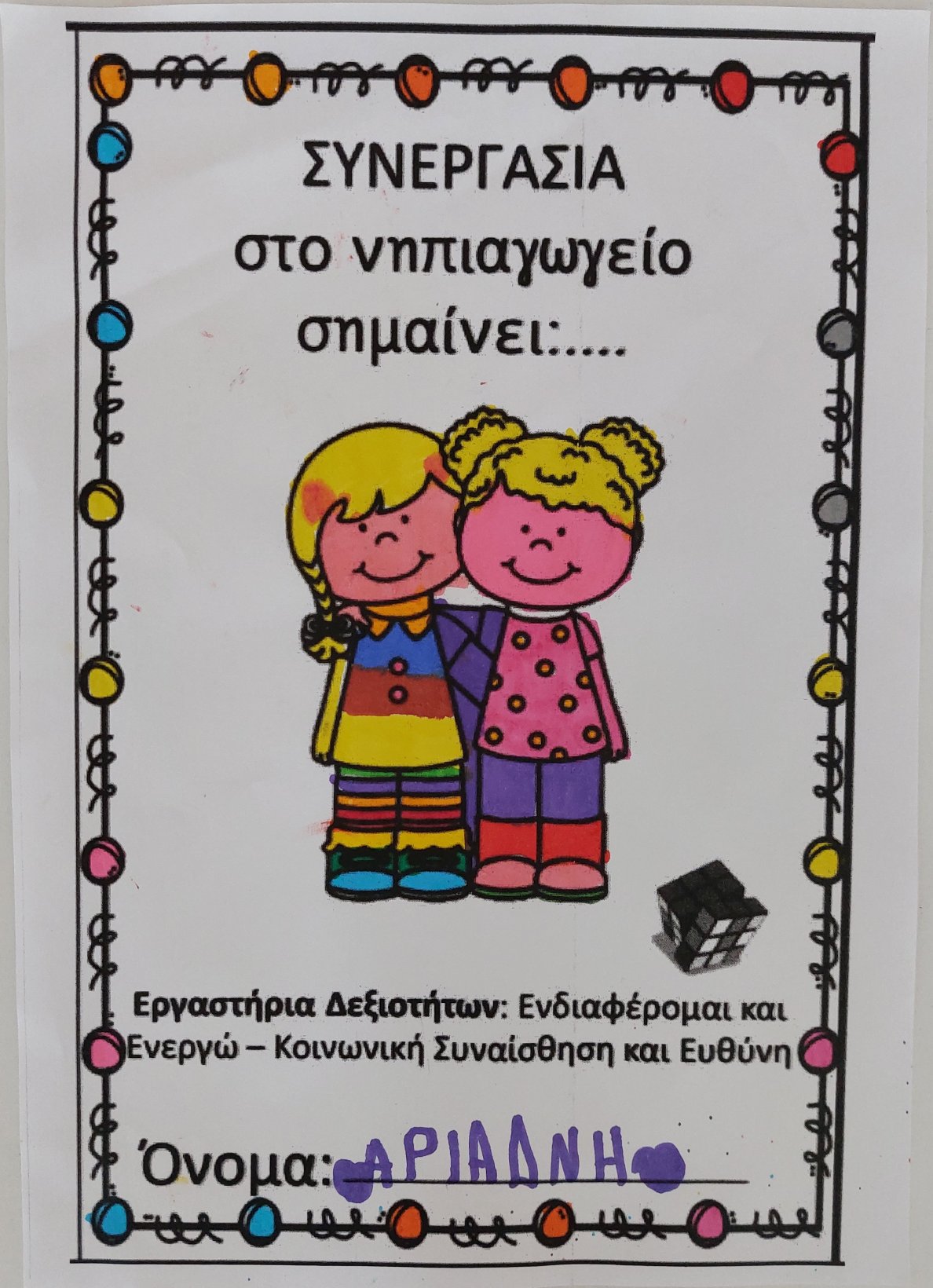 Μέσα από αυτό μάθαμε πόσο σπουδαίο να δουλεύουμε όλοι μαζί και να συνεργαζόμαστε για ένα σκοπό. Επίσης διαβάσαμε αρκετά παραμύθια που μιλούσαν για φιλία, συνεργασία και διαχείριση προβλημάτων.