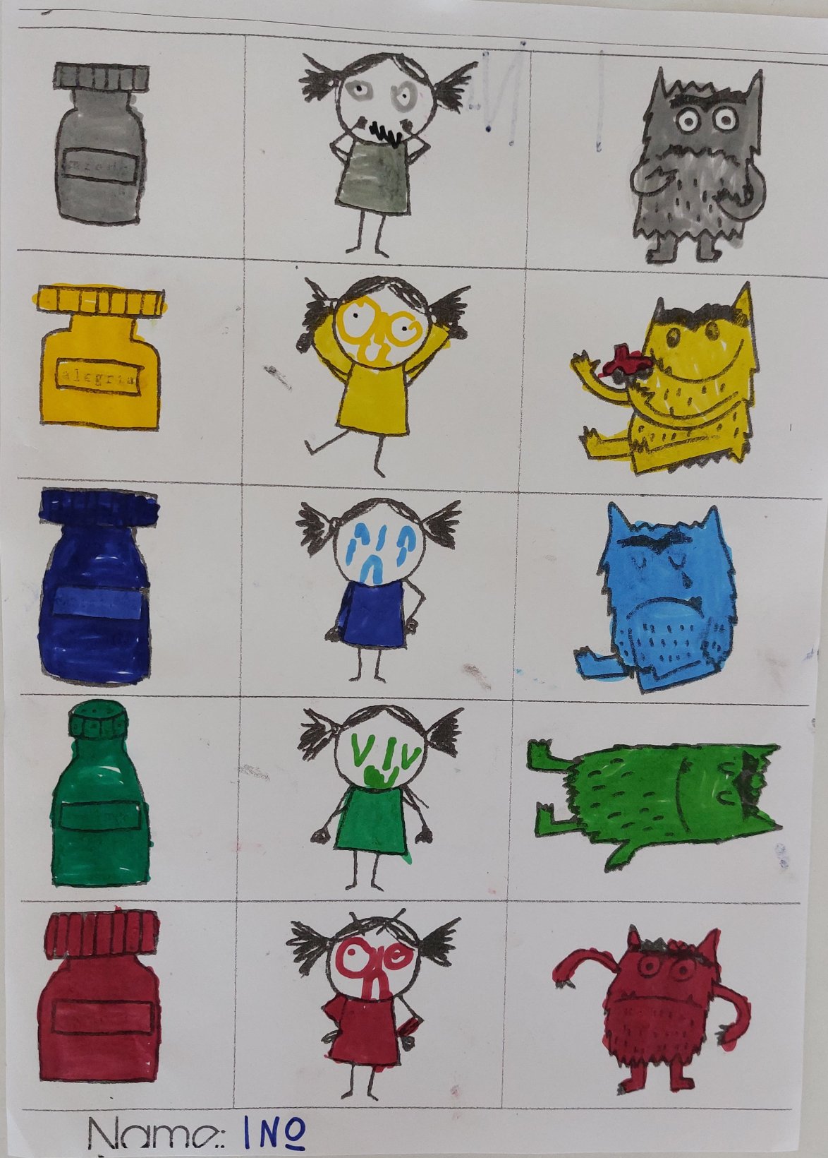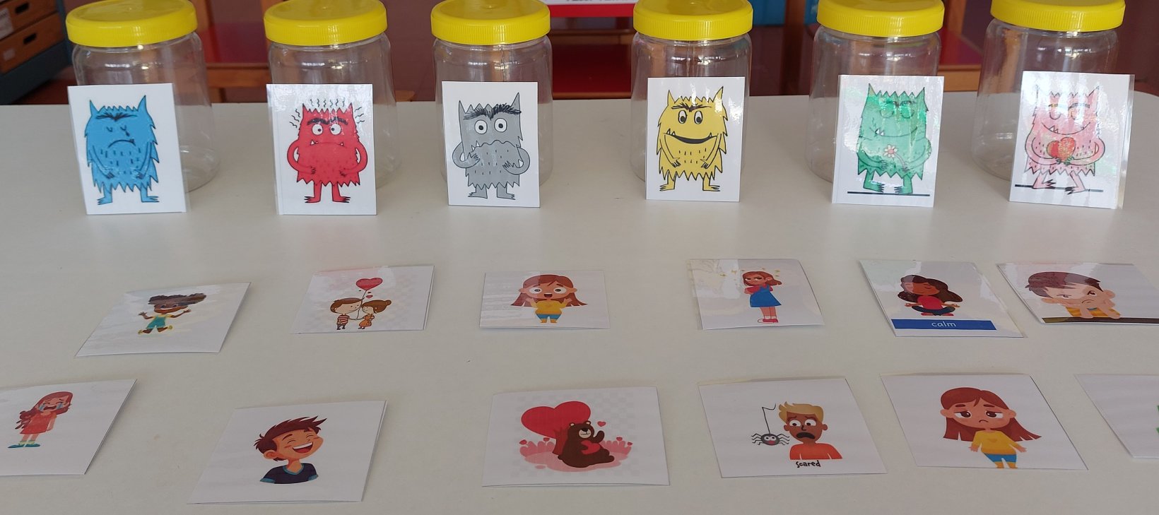 Φτιάξαμε και ένα επιτραπέζιο παιχνίδι στο οποίο οι παίχτες πρέπει να βάλουν τα συναισθήματα στα μπουκαλάκια τους. Όταν ο παίχτης (τερατάκι – κοριτσάκι) βρίσκεται πάνω σε ένα χρώμα, αναγνωρίζει το συναίσθημα και λέει την εμπειρία του.